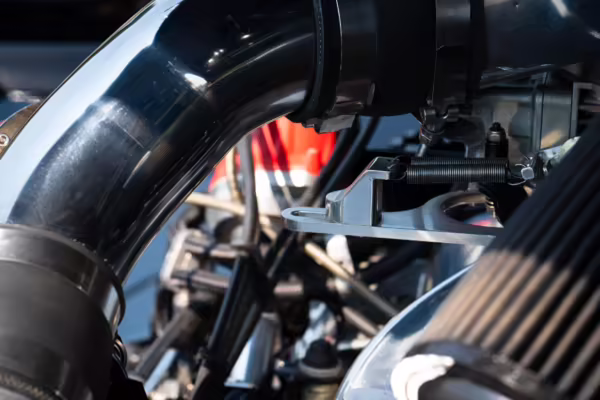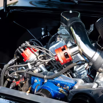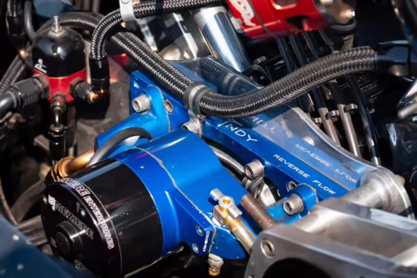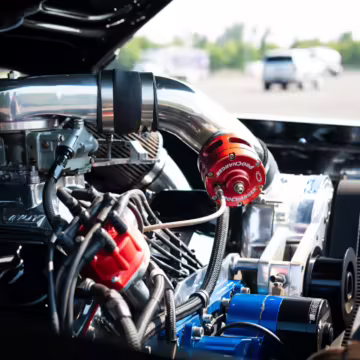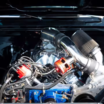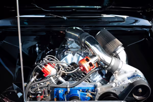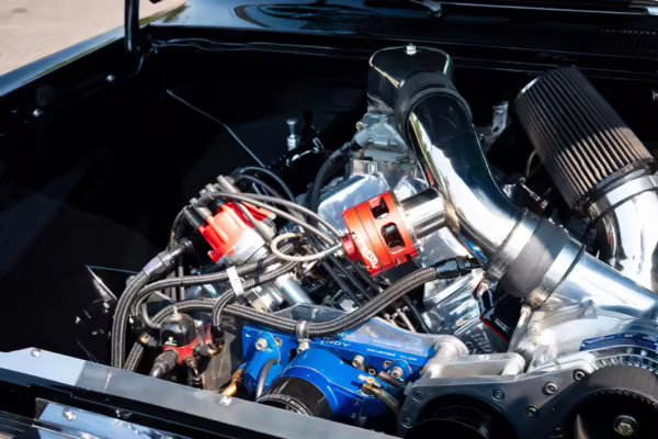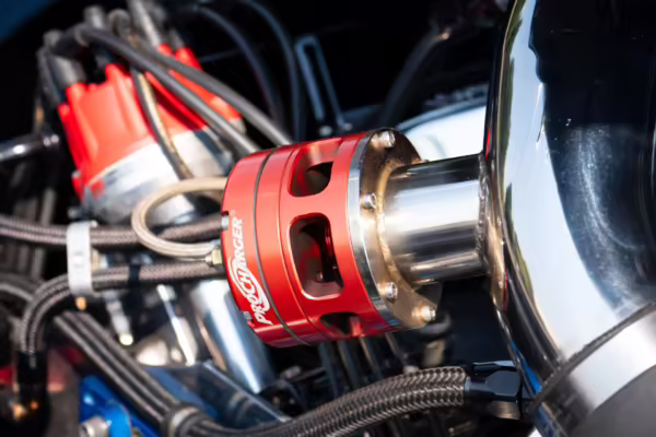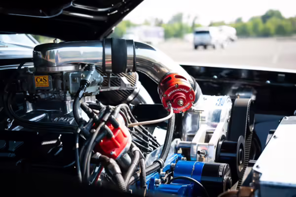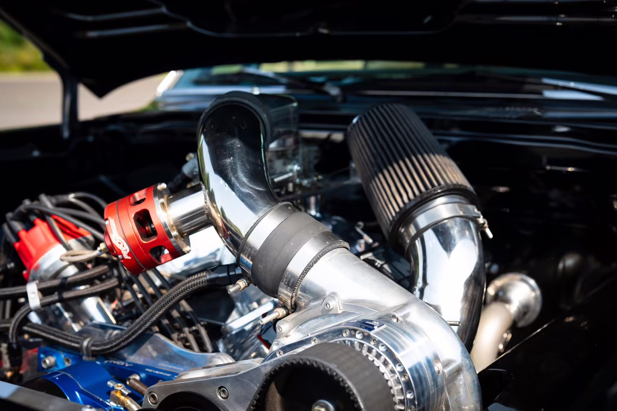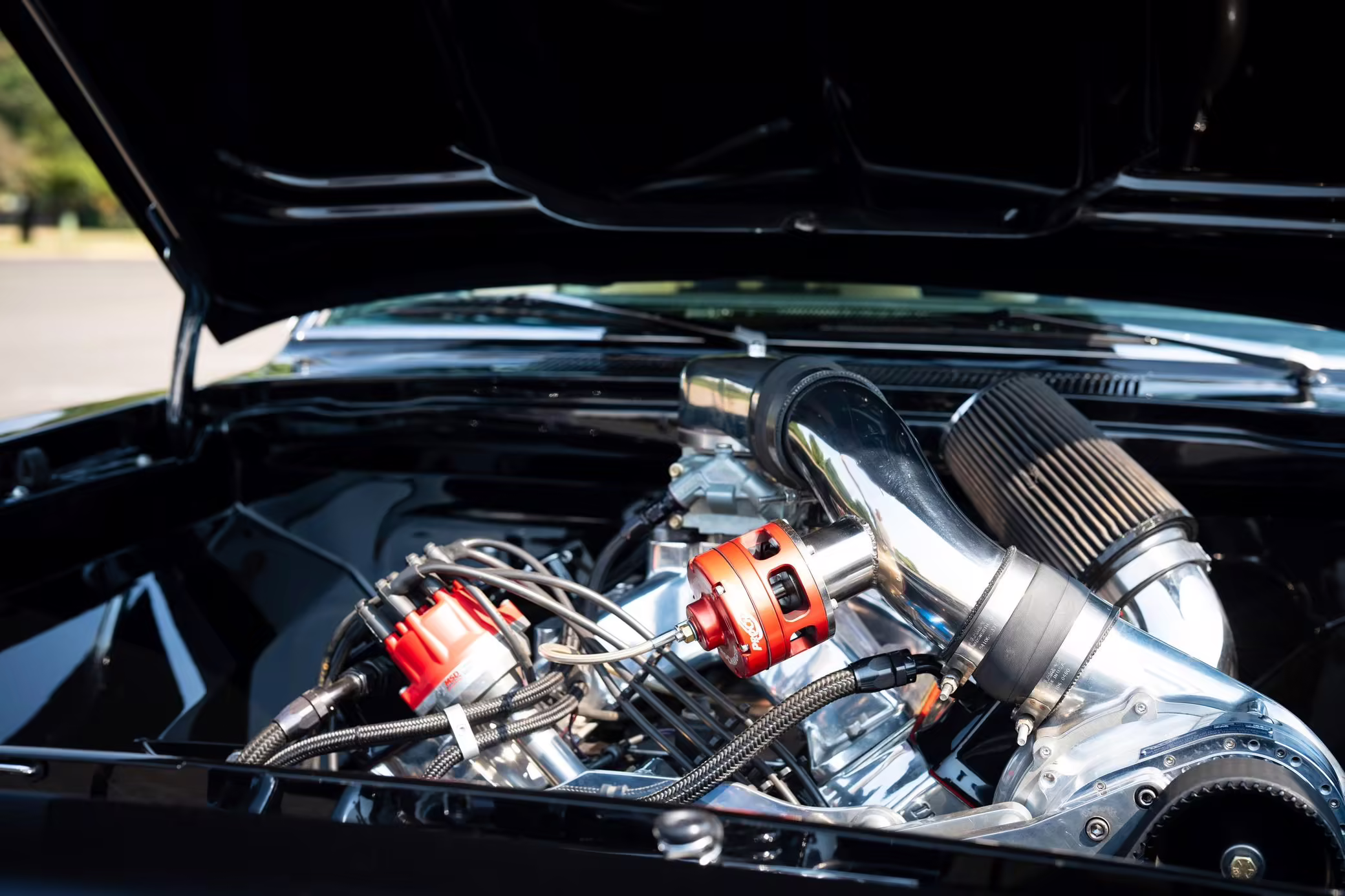 • This Barracuda has been extensively modified for drag racing. Its factory-fitted engine was replaced by a 540-cubic-inch Chrysler Mega Block V8 engine fitted with a ProCharger F-2 supercharger kit, according to the seller.