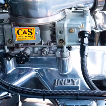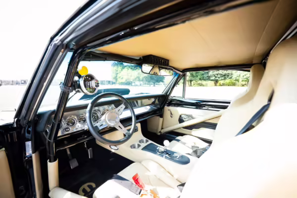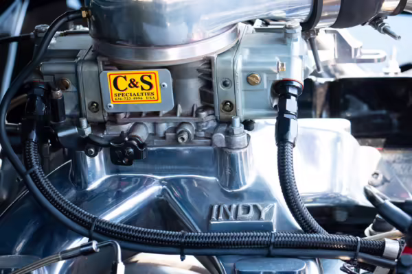 • A partial list of notable currently installed equipment reported by the seller includes Indy cylinder heads, an electric water pump, a C&S Specialties carburetor, a Dutchman Motorsports narrowed 9-inch rear end, coilovers, 11-inch front and rear disc brakes, 15-inch Bogart wheels, and a 10-point roll cage.