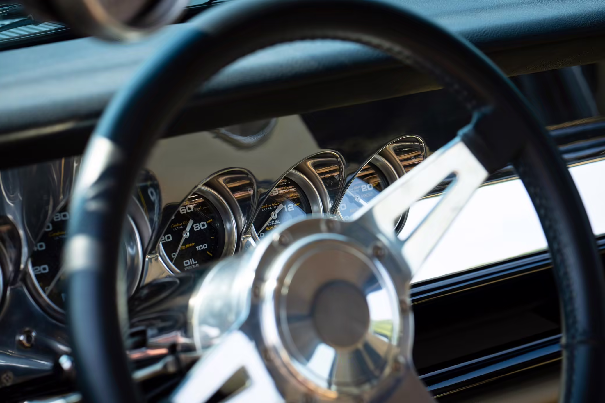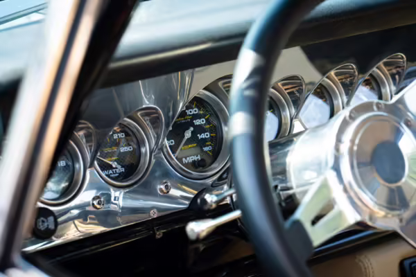 • This Barracuda’s factory-fitted instrument cluster has been replaced with aftermarket gauges. As a result, its true mileage is unknown (TMU).