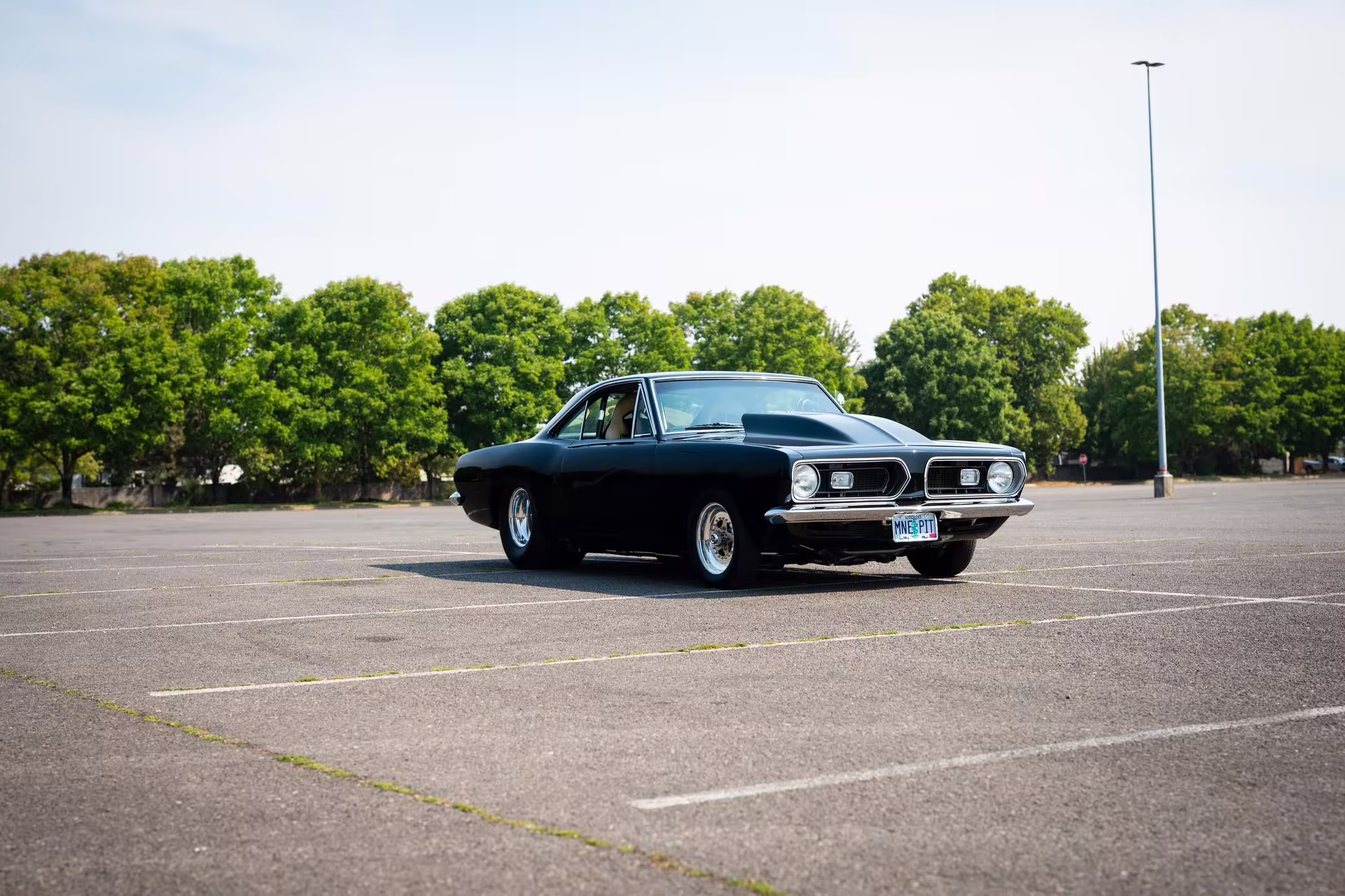 1967 Plymouth Barracuda Hardtop, finished in black with a beige interior.