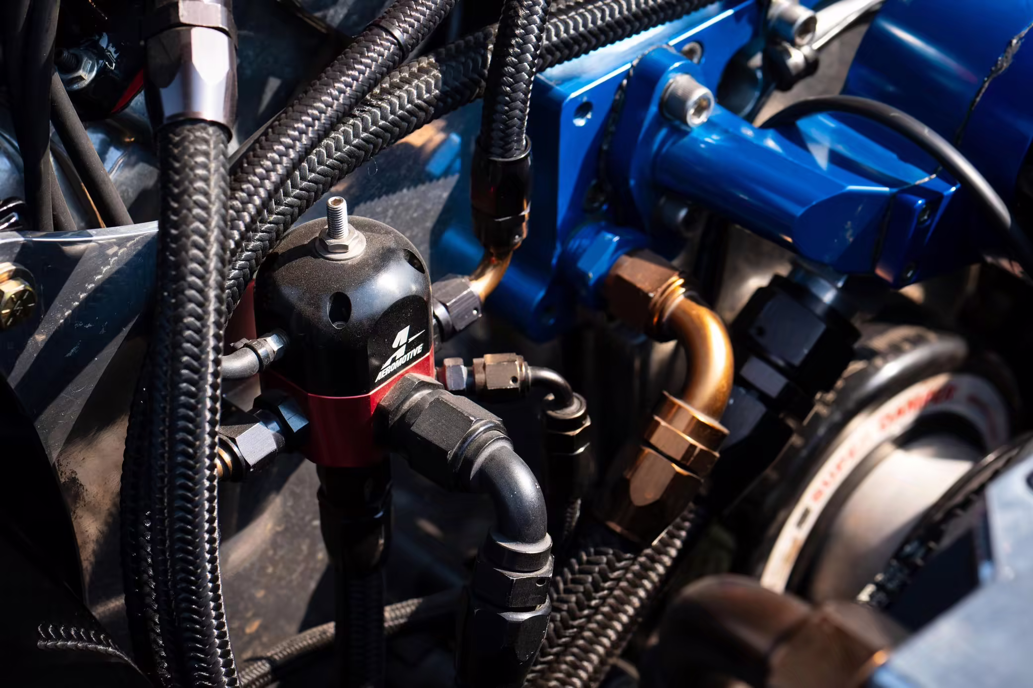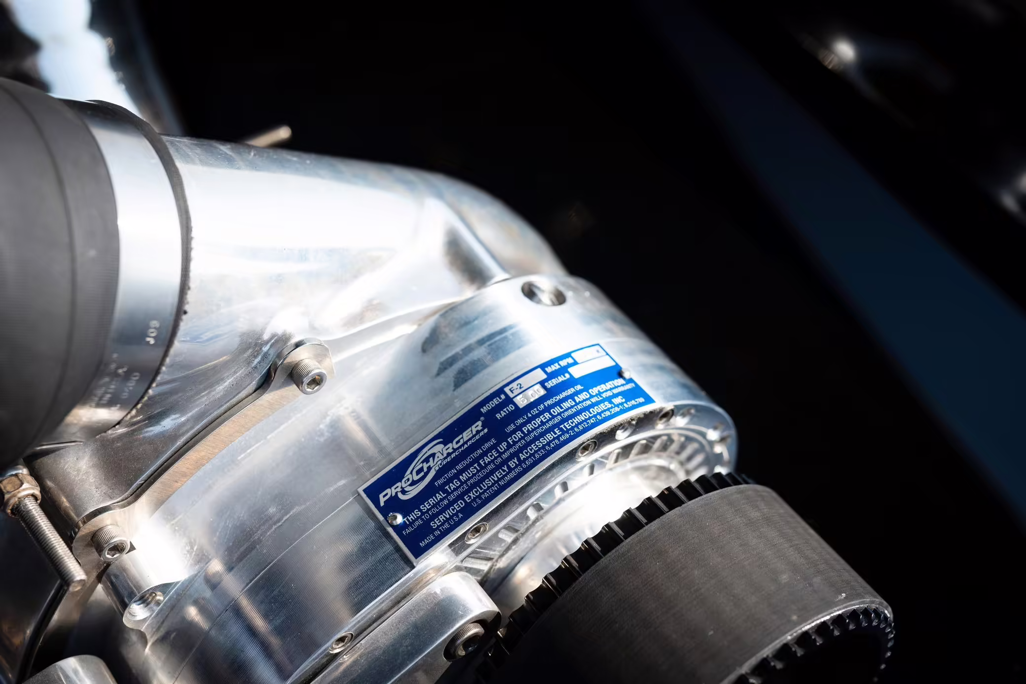 • Power comes from a 540-cubic-inch supercharged V8. The seller estimates its output to be at around 1,200 horsepower, but a dyno sheet was not provided to confirm. Output is sent to the rear wheels via a 3-speed automatic transmission.