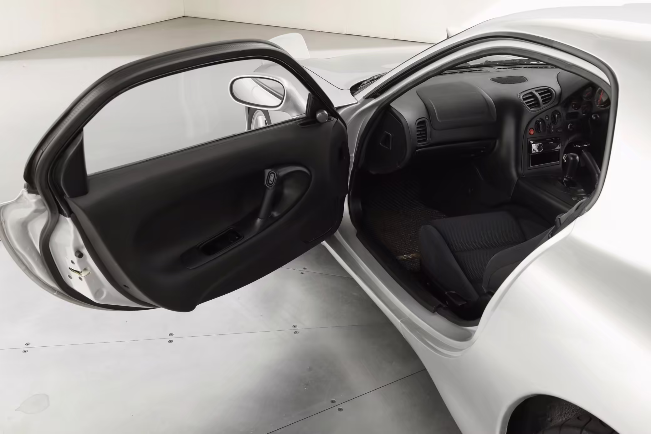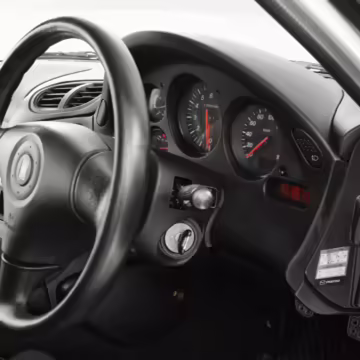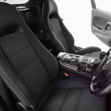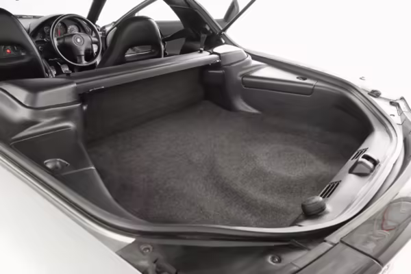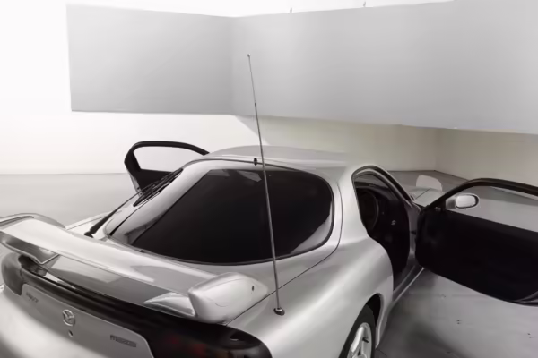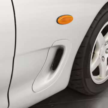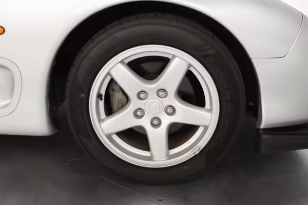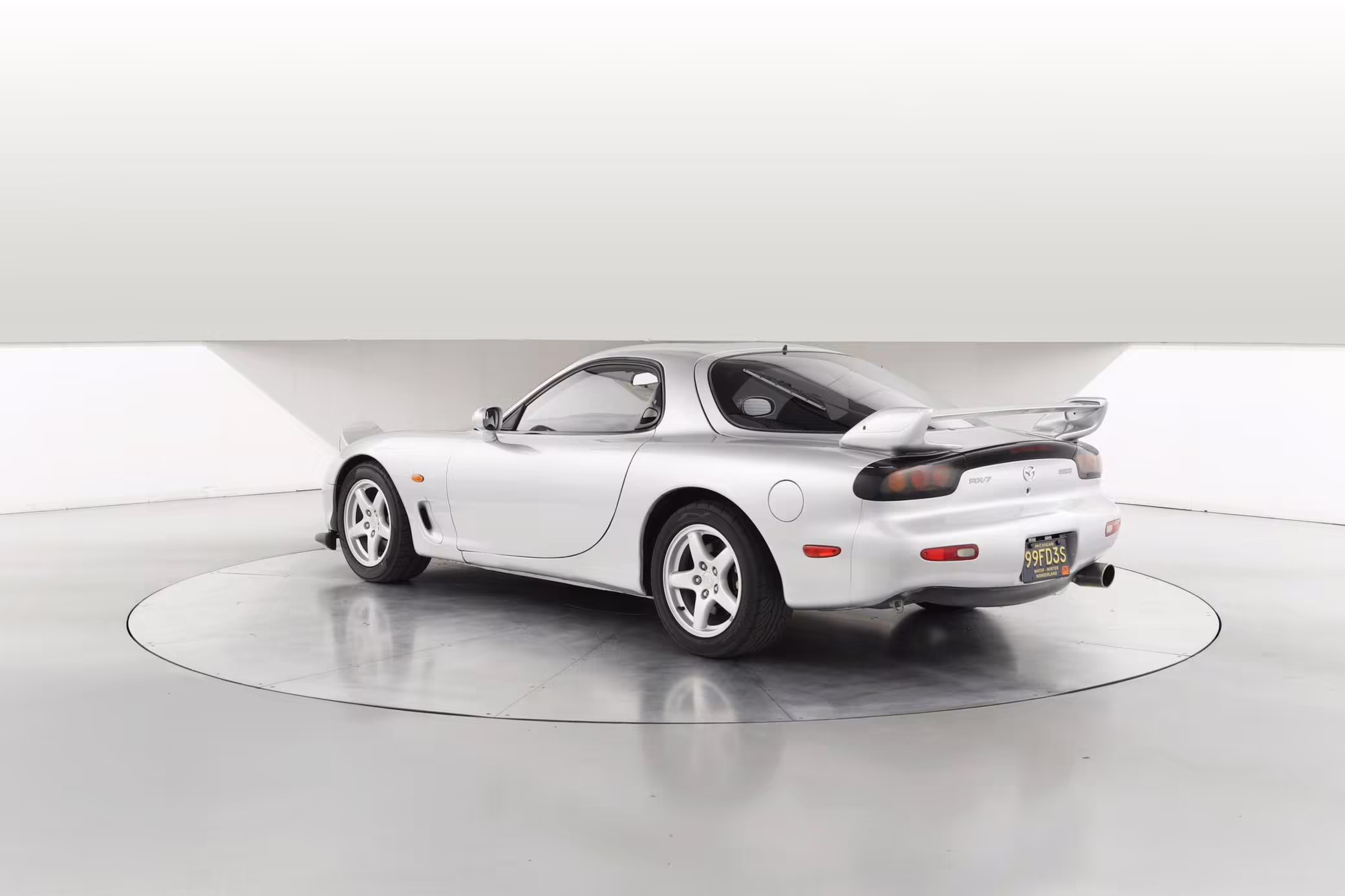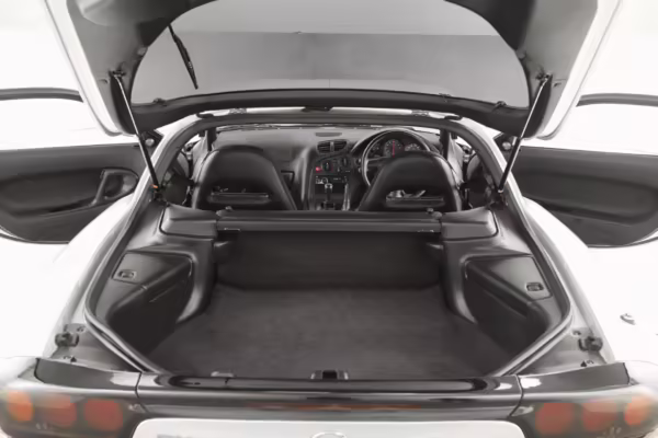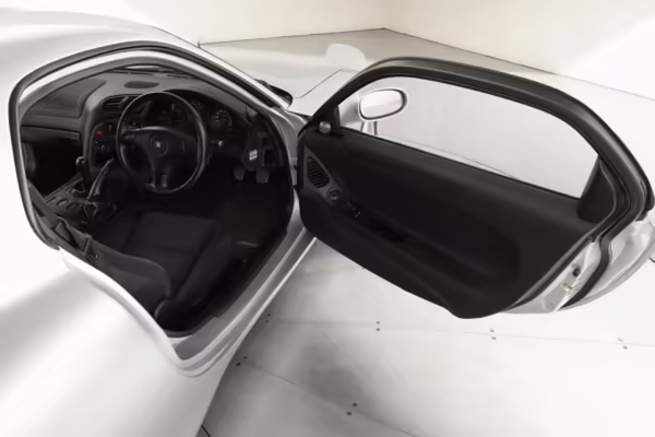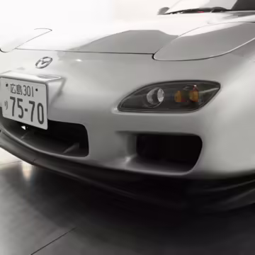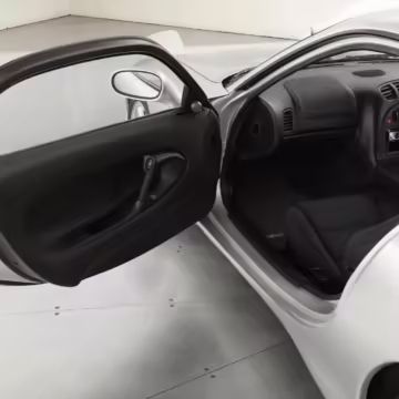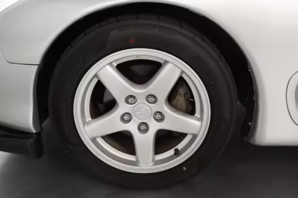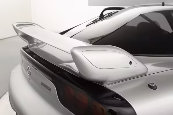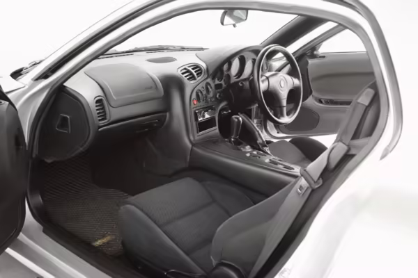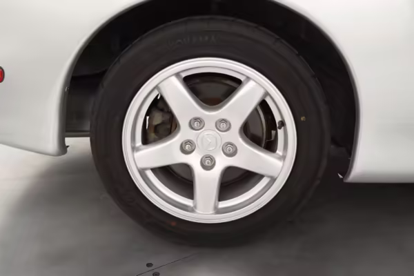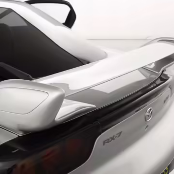 • Launched in Japan by the short-lived ɛ̃fini brand in 1991, Mazda’s third-generation RX-7 (called “FD” internally) was praised by enthusiasts and journalists as a significant improvement over its predecessor. Its more fluid lines aligned it with the design trends of the 1990s, and the Wankel rotary gave it Porsche-like performance without the price tag. The FD saw numerous updates throughout its lifespan, and final-version Series 8 models such as this one received updates such as facelifted bumpers, a 4-level adjustable rear spoiler, and increased output from its sequential twin-turbocharged rotary engine.