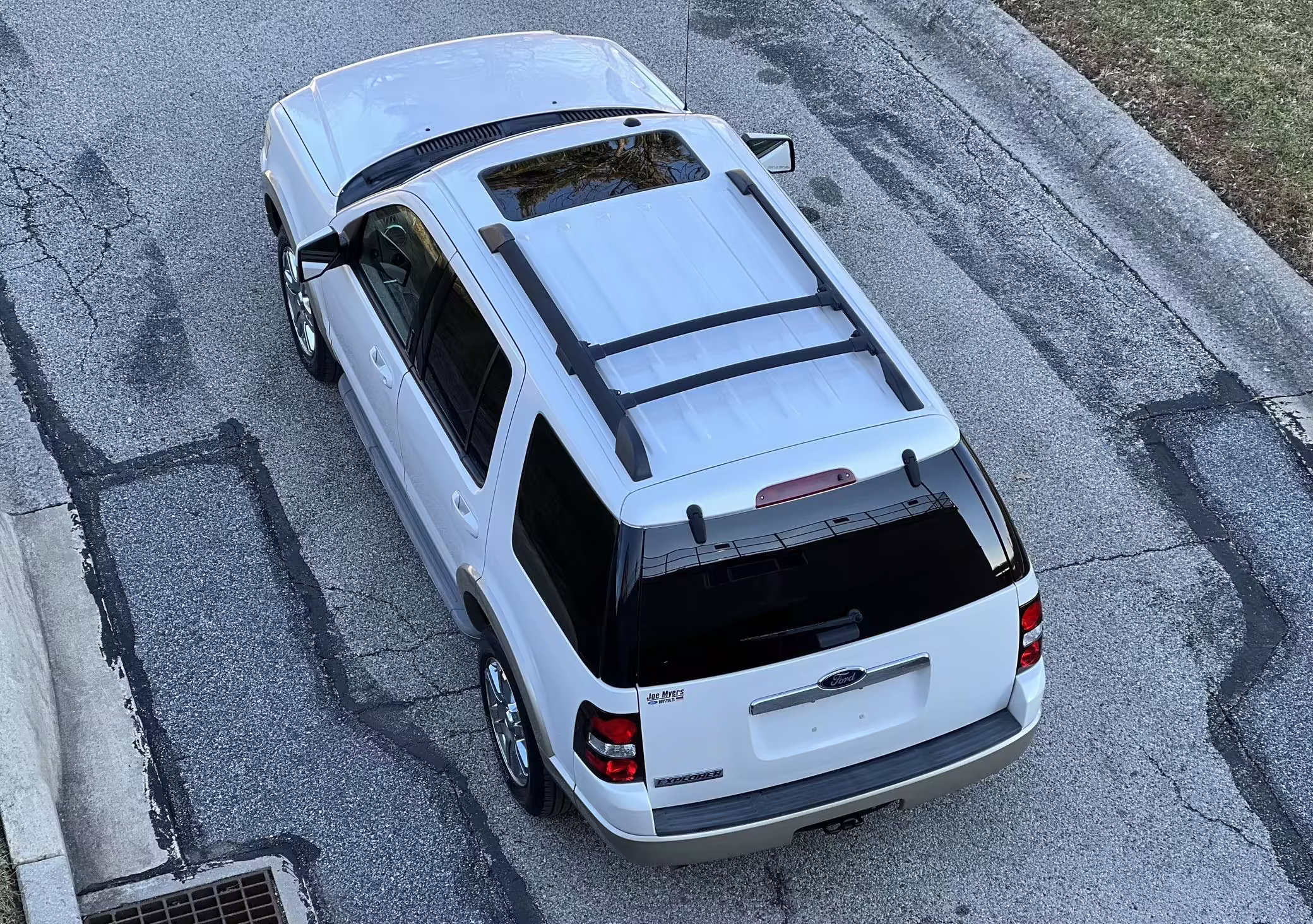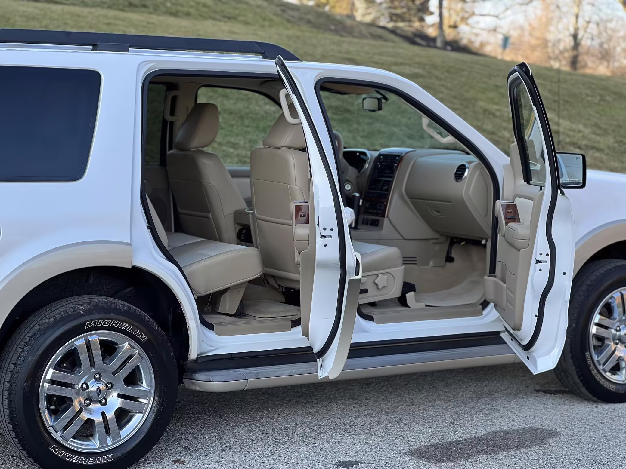 2010 Ford Explorer Eddie Bauer, finished in White Platinum Metallic Tri-Coat and Pueblo Gold with a Camel and Sand interior.