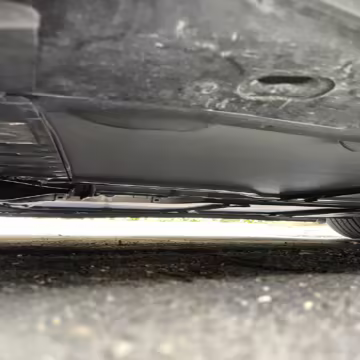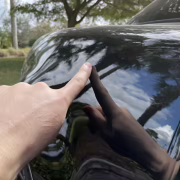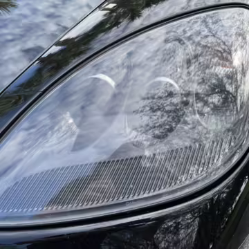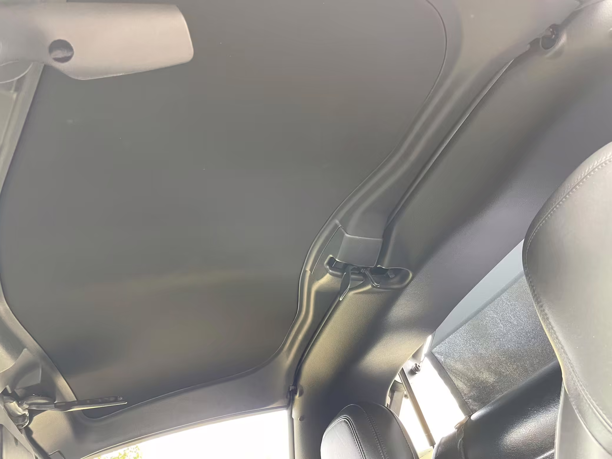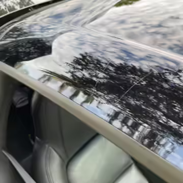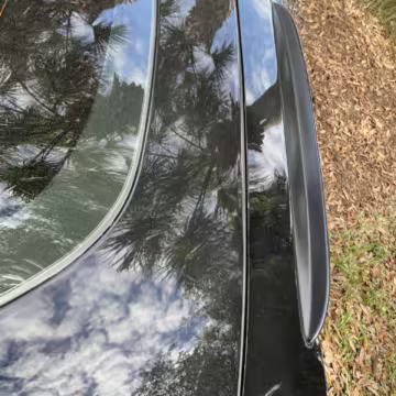 Scratch on passenger-side rear quarter panel, near rear spoiler, and on transparent roof panel