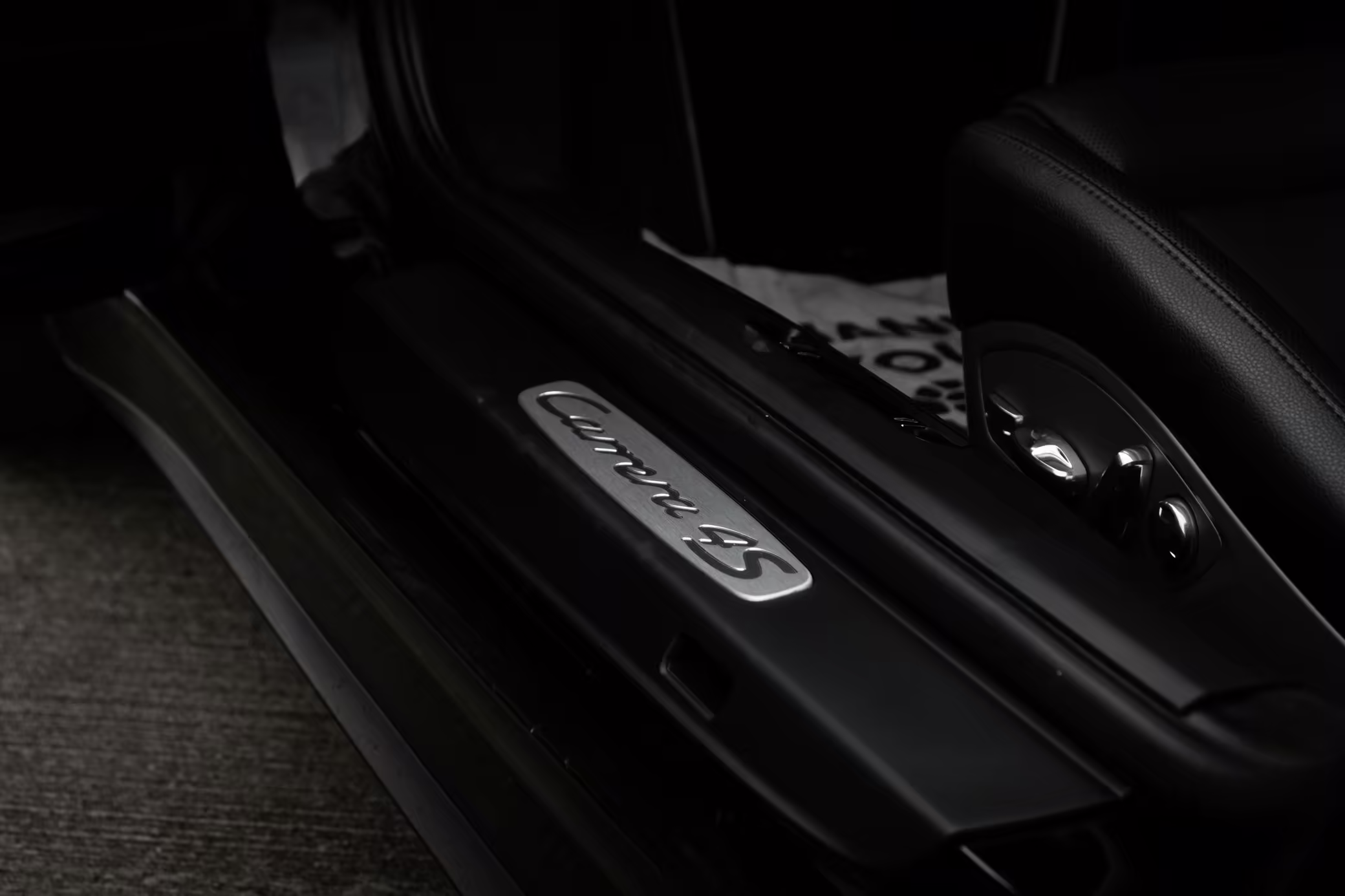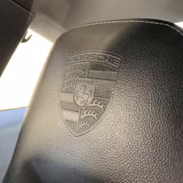 Porsche crest embossed headrests