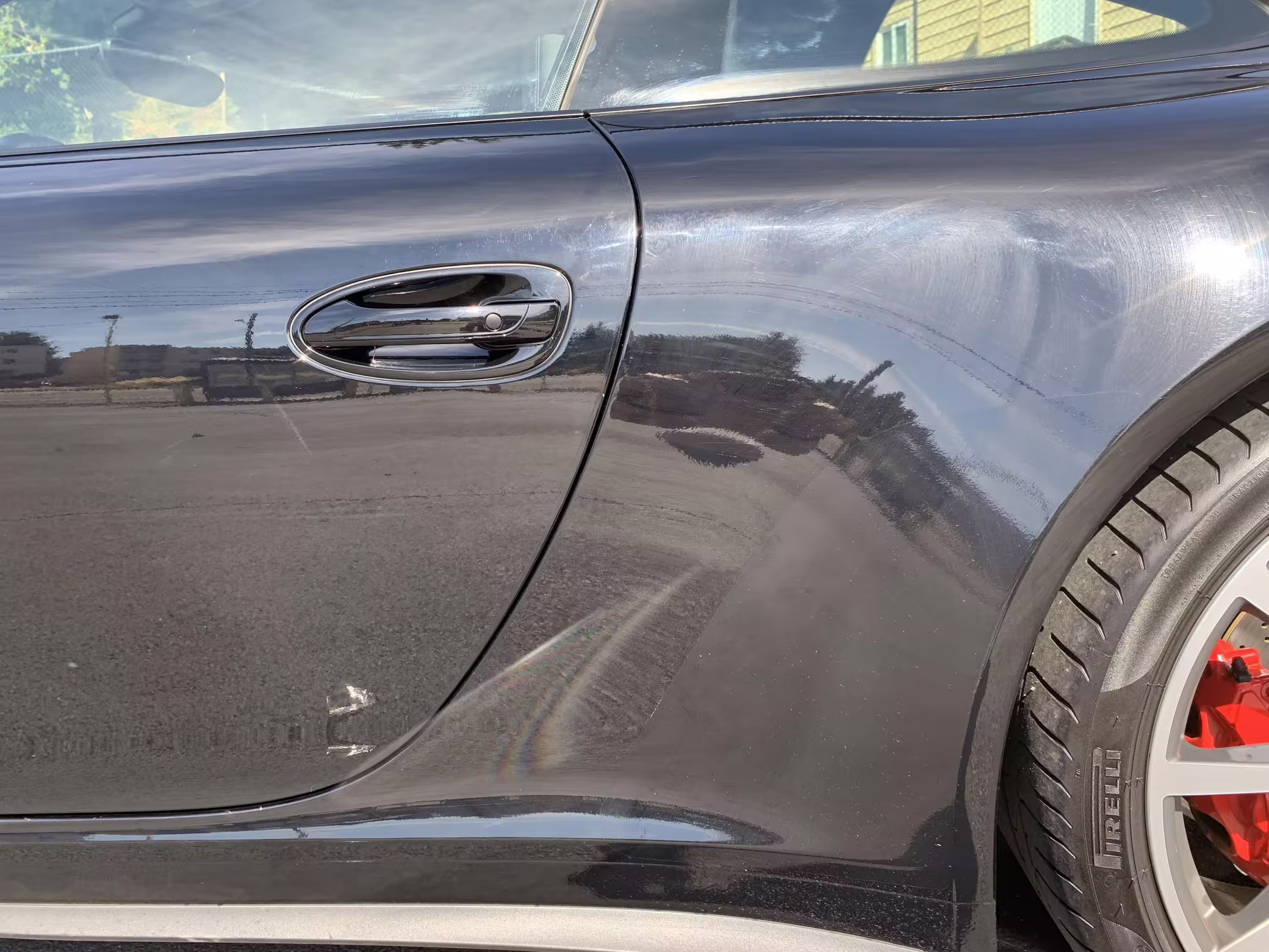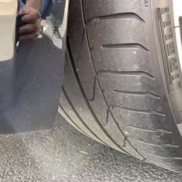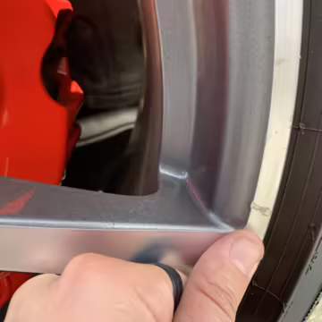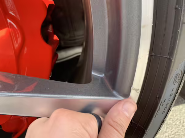 Scratch on left front wheel
