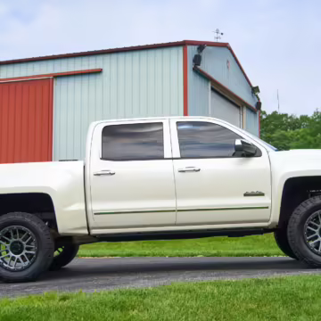 Modifications to this Silverado are extensive, and the full list is detailed below. Highlights include a Magnuson supercharger, a Mazzulla Offroad Mid Travel suspension kit with King Off-Road 2.5 remote-reservoir shocks and Deaver springs, 20-inch Nemesis wheels, FiberwerX 3-inch fenders and bedsides, and more, as detailed below.