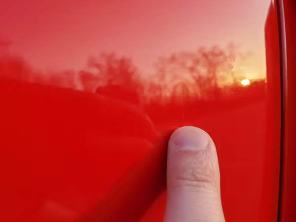 Ding near hood scoop and driver’s side door handle