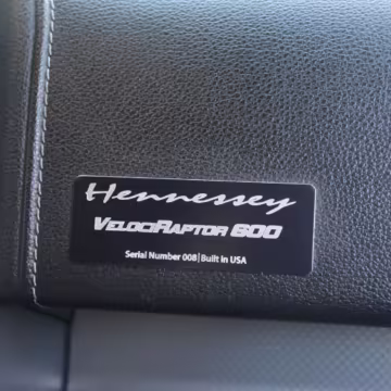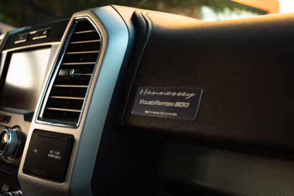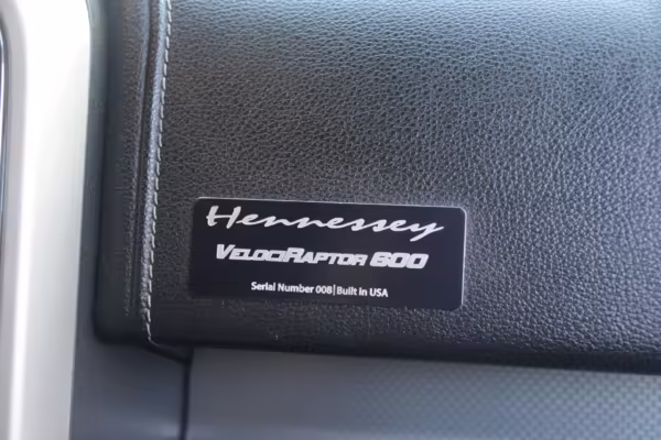 This truck began life as a Ford F-150 Lariat SuperCrew but then received the Hennessey VelociRaptor 600 performance upgrade. This includes a supercharger, a high-flow intake, stainless steel exhaust, upgraded fuel injectors, and a tune. This truck is #008 of 500 for the 2015 model year, which did not have a Raptor model from Ford.