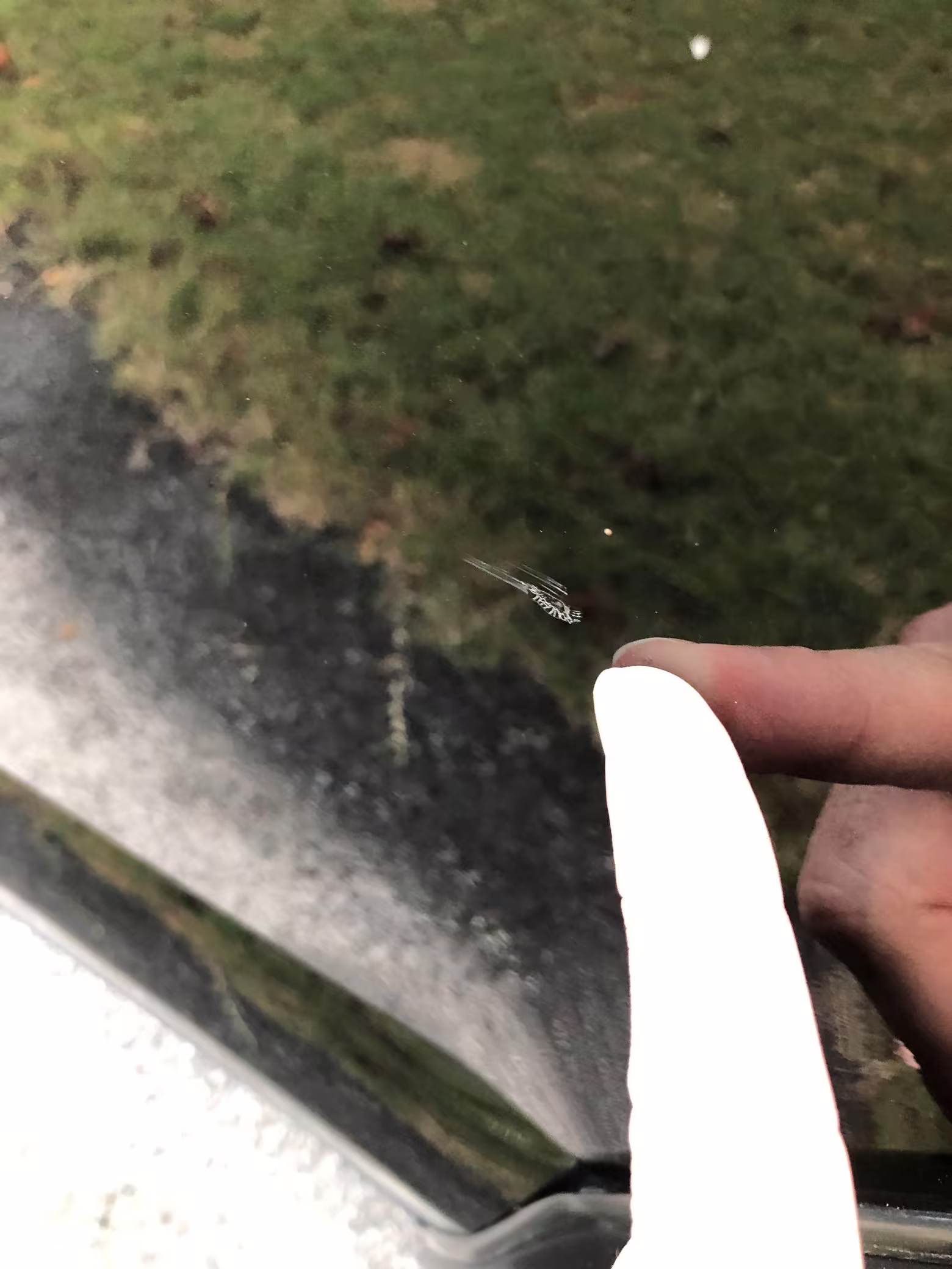 Chipped clearcoat in three spots on front bumper