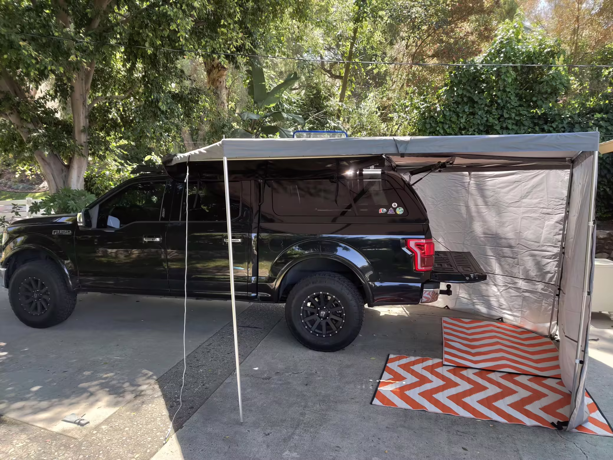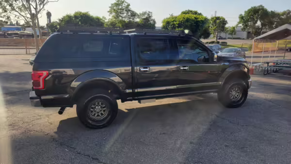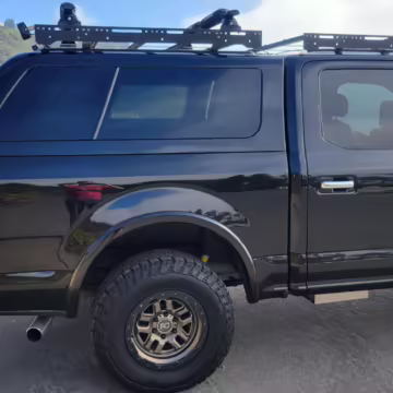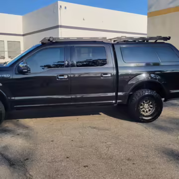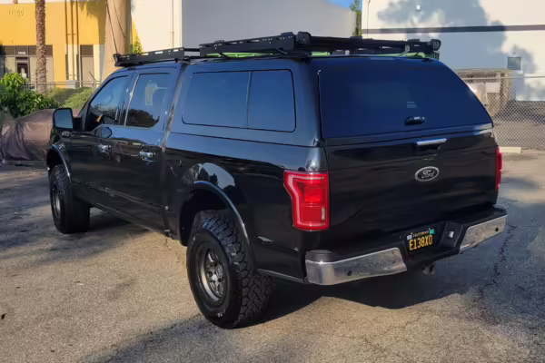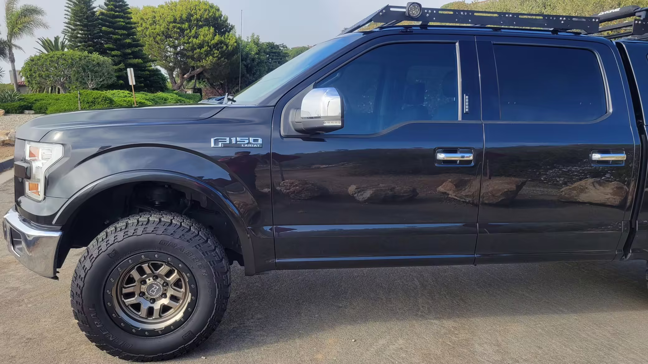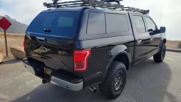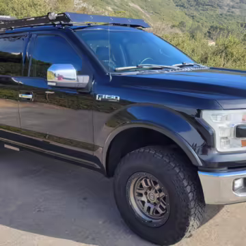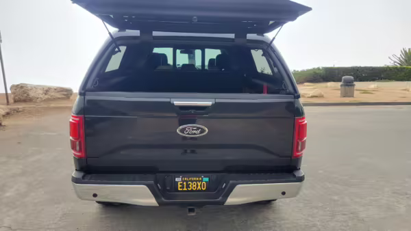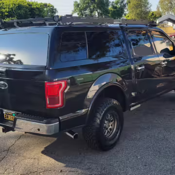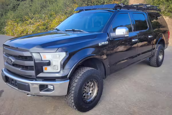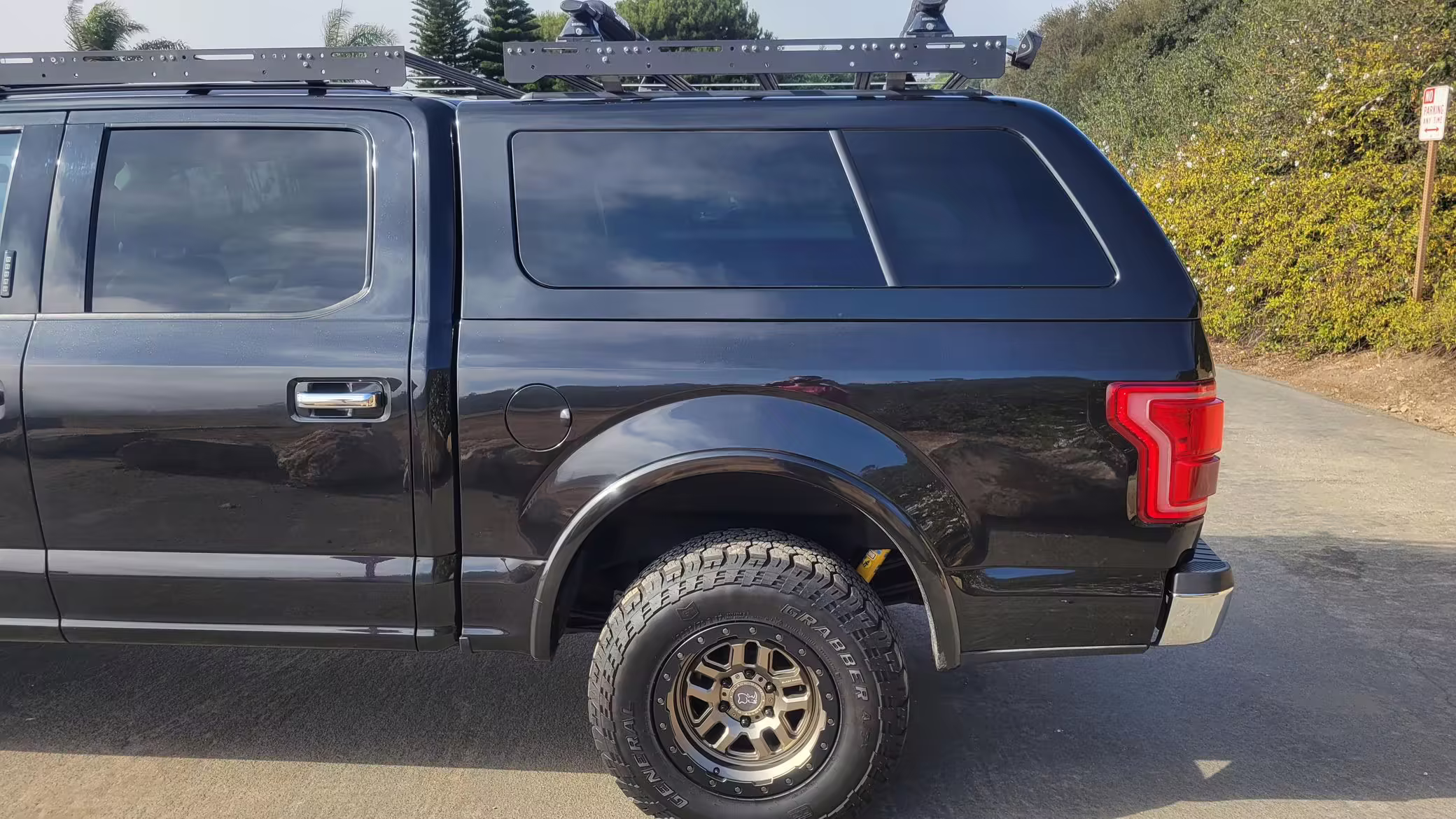 This F-150 has been extensively modified for use as an offroad-capable camper. A full list of modifications is included below, and some highlights include a CTEK dual-battery management system that has been set up for solar integration, Bilstein B6 rear shocks and Super Springs rear leaf helper, a 2-inch front leveling kit, and an A.R.E. color-matched shell.