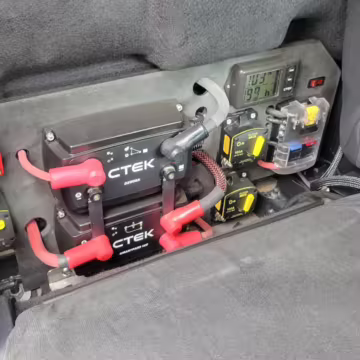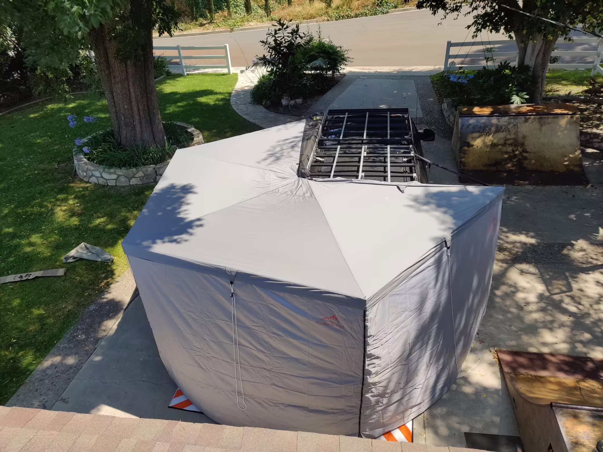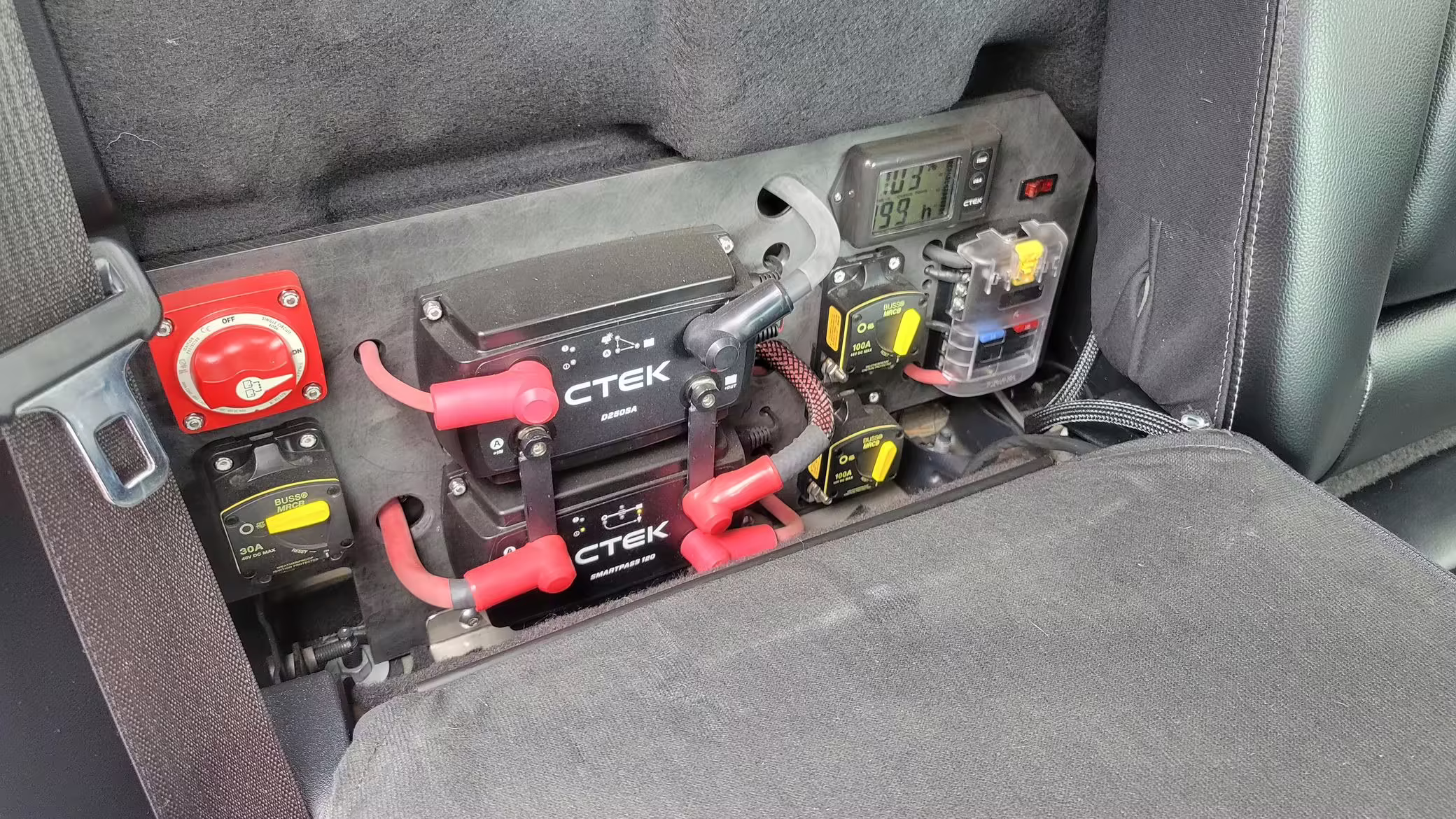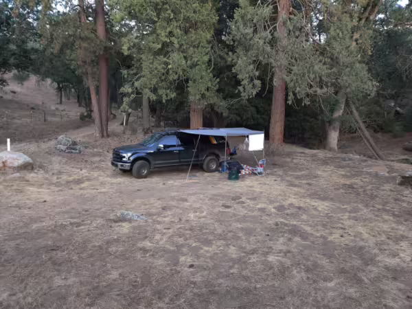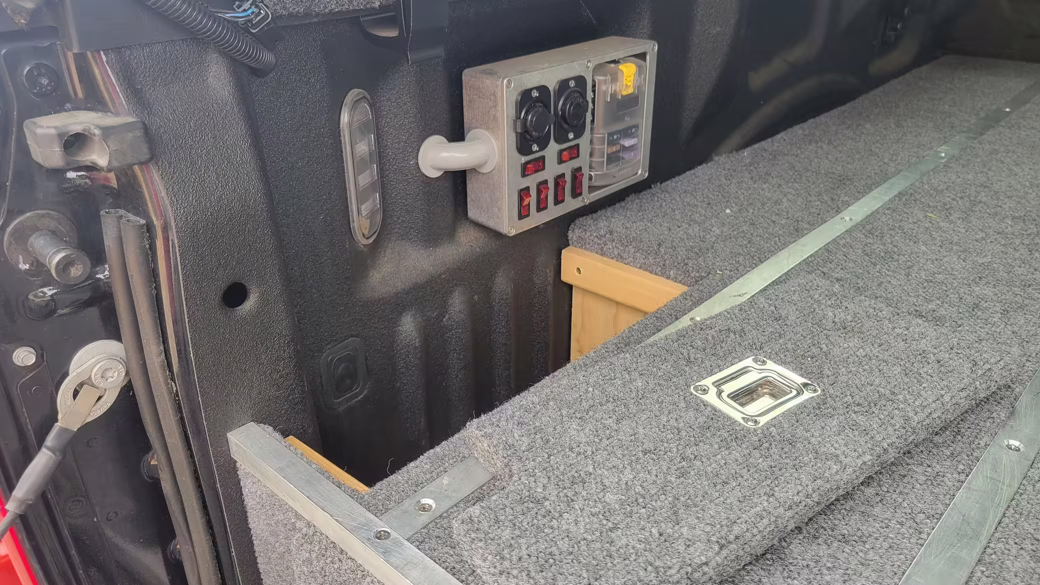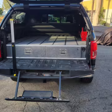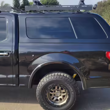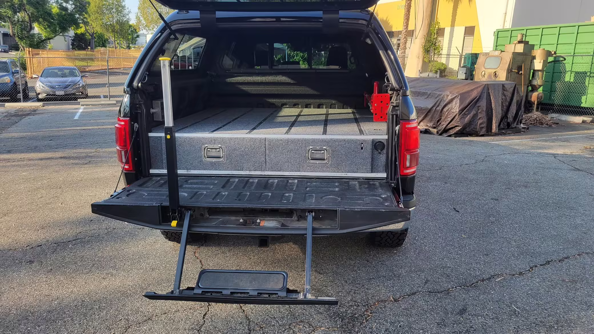 This F-150 has been extensively modified for use as an offroad-capable camper. A full list of modifications is included below, and some highlights include a CTEK dual-battery management system that has been set up for solar integration, Bilstein B6 rear shocks and Super Springs rear leaf helper, a 2-inch front leveling kit, and an A.R.E. color-matched shell.