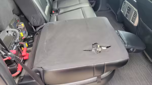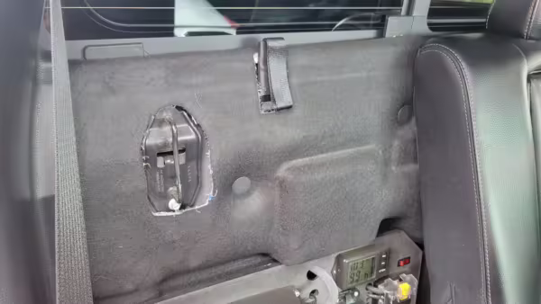 Scratch on the interior plastic trim of the rear passenger door (pictured in the gallery)
