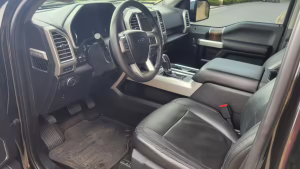 2015 Ford F-150 Lariat, finished in Tuxedo Black Metallic with a black leather interior.