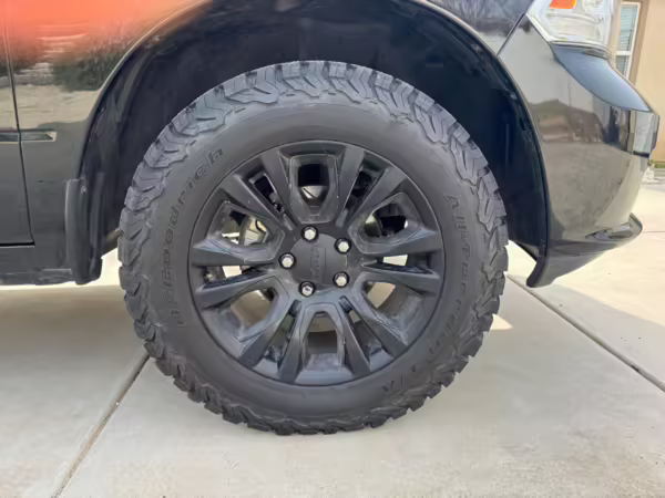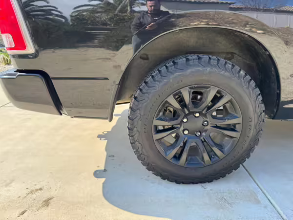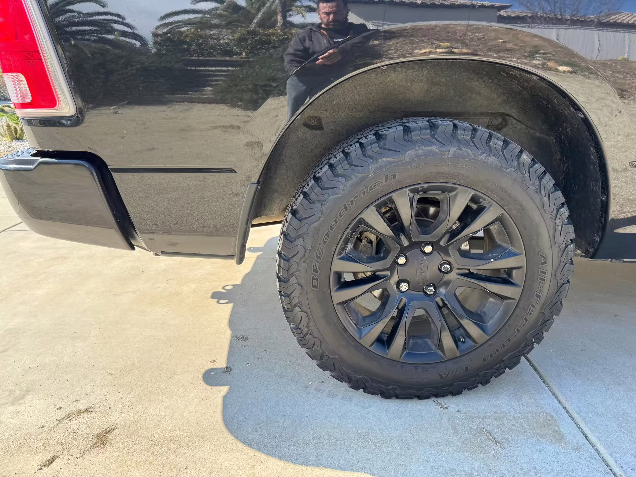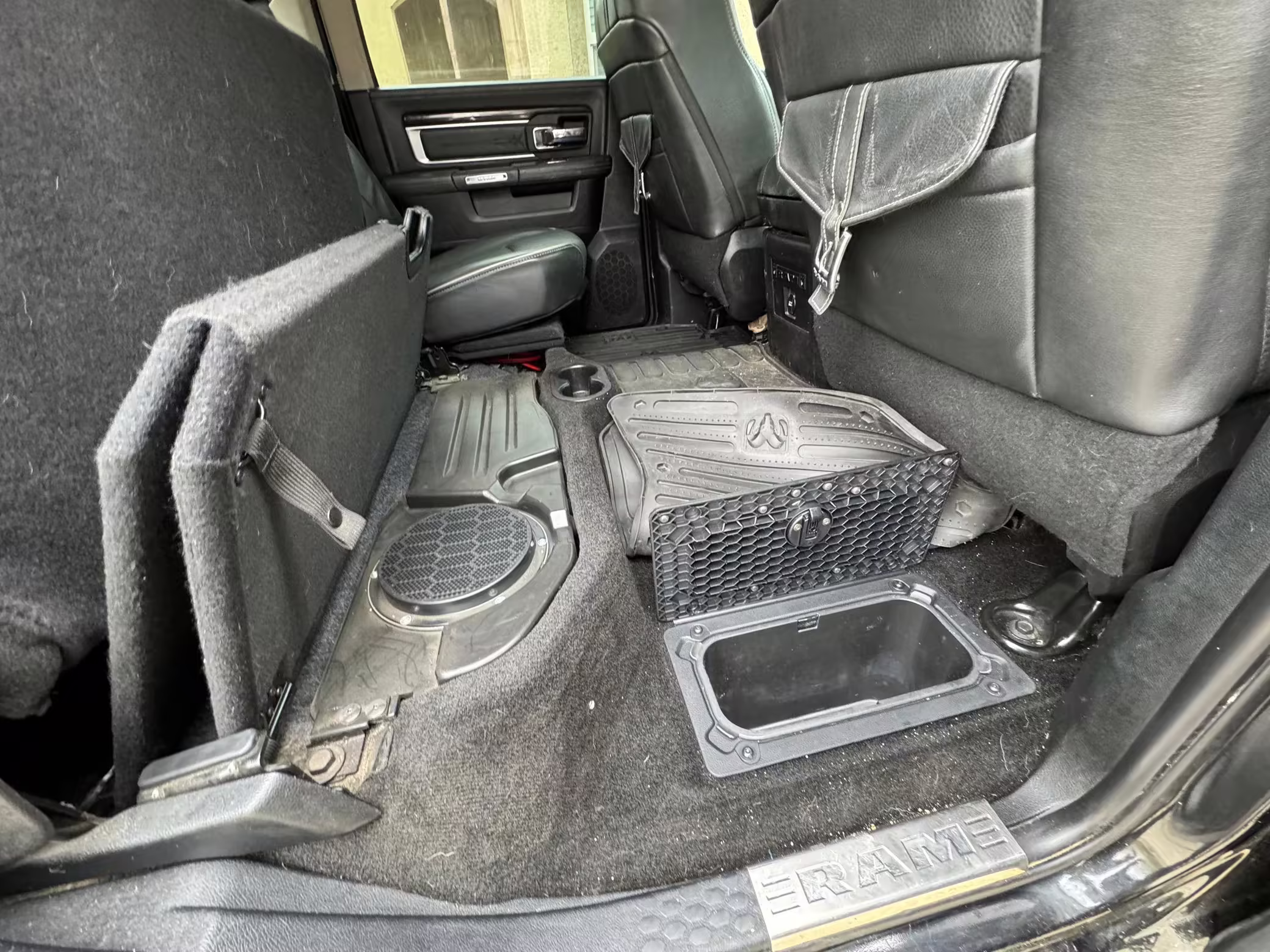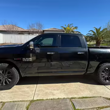 Modifications reported by the seller include power-operated side steps, tinted windows, a Ram front grille, and black finish on the wheels.