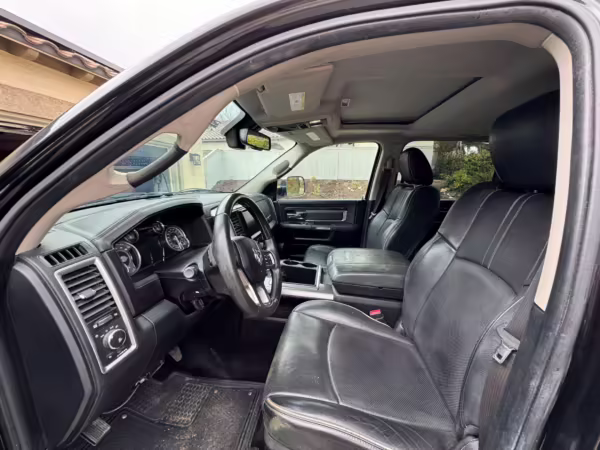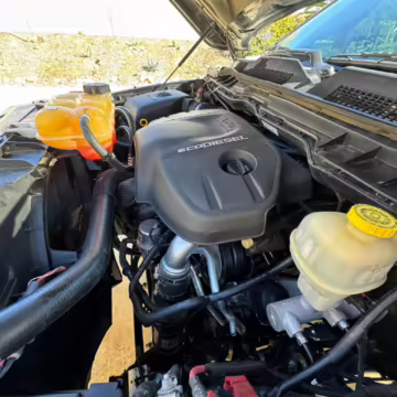 The Ram 1500 is a great truck that boasts excellent capabilities, a nice interior, and handsome styling. This particular Ram is a 1500 Laramie Limited model with 4-wheel drive that’s powered by a stout (and uncommon) 3.0-liter turbodiesel V6 with 420 pound-feet of torque. It also boasts a long list of excellent factory equipment, including air suspension, heated front and rear seats, a sunroof, and more.