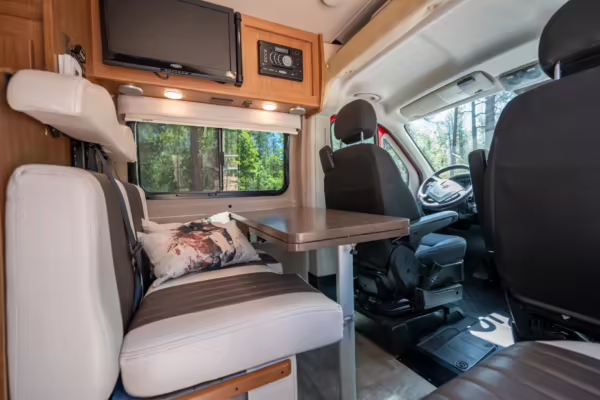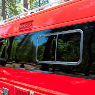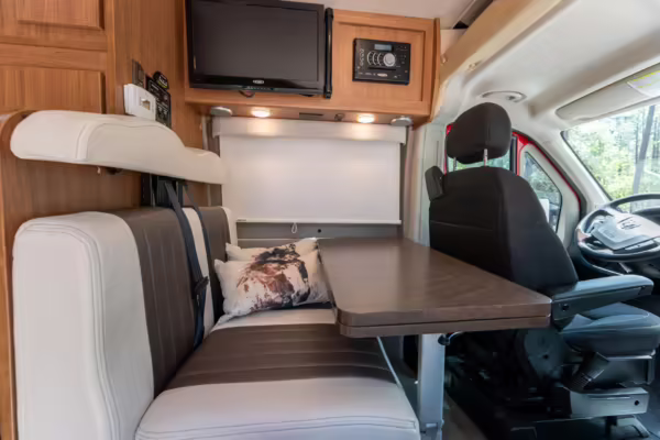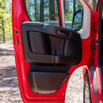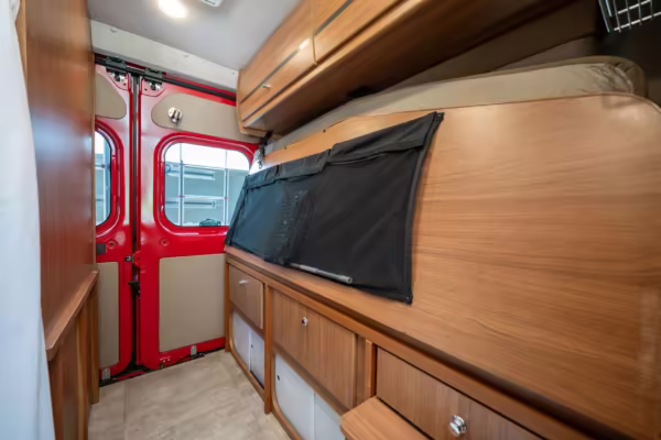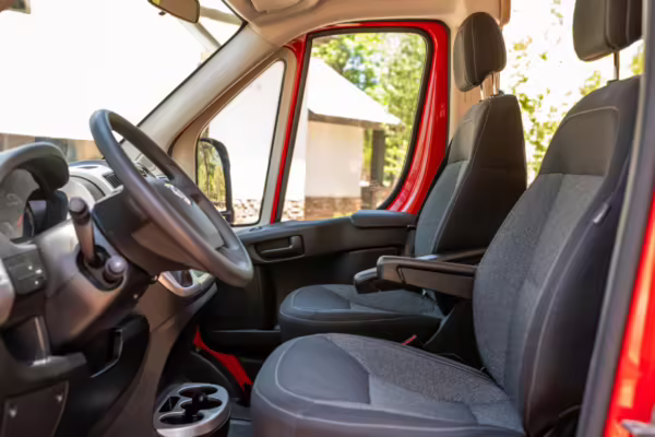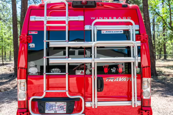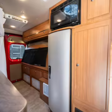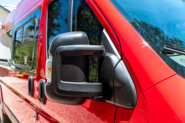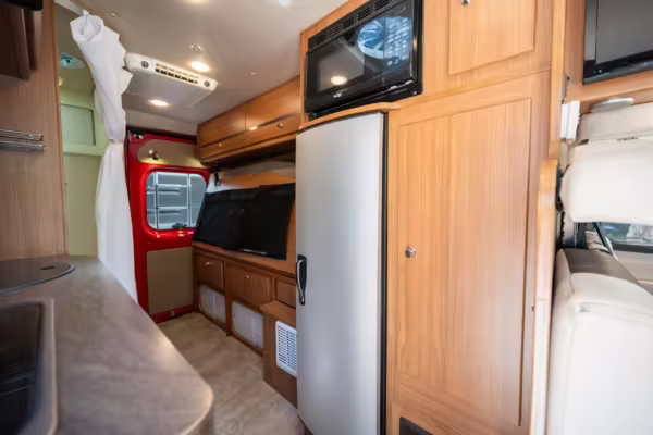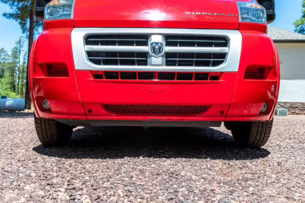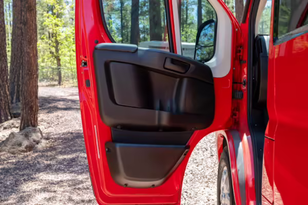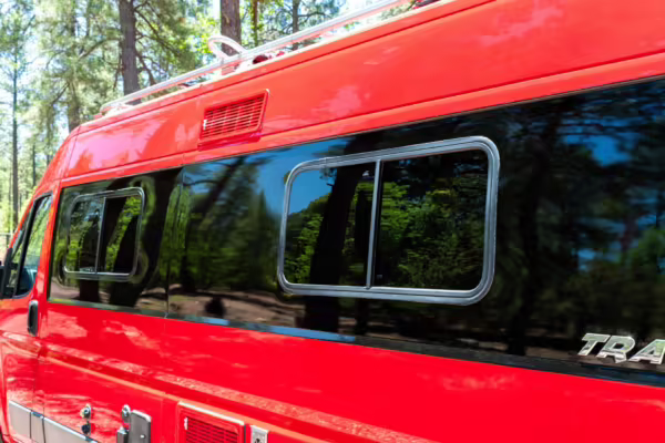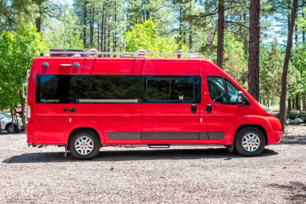 2015 Ram ProMaster 3500 Winnebago Travato, finished in Flame Red with a gray interior.