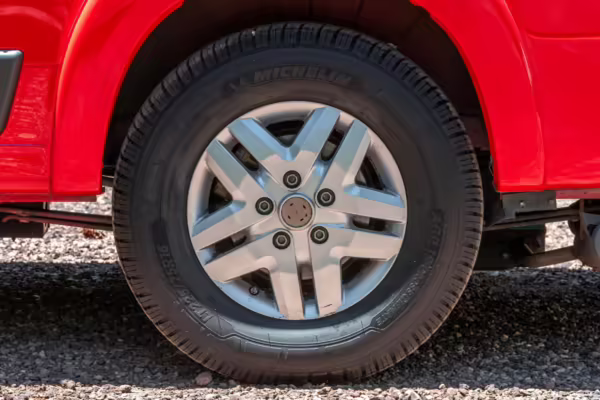 Some scratches on the wheels; driver-side rear center cap missing
