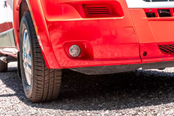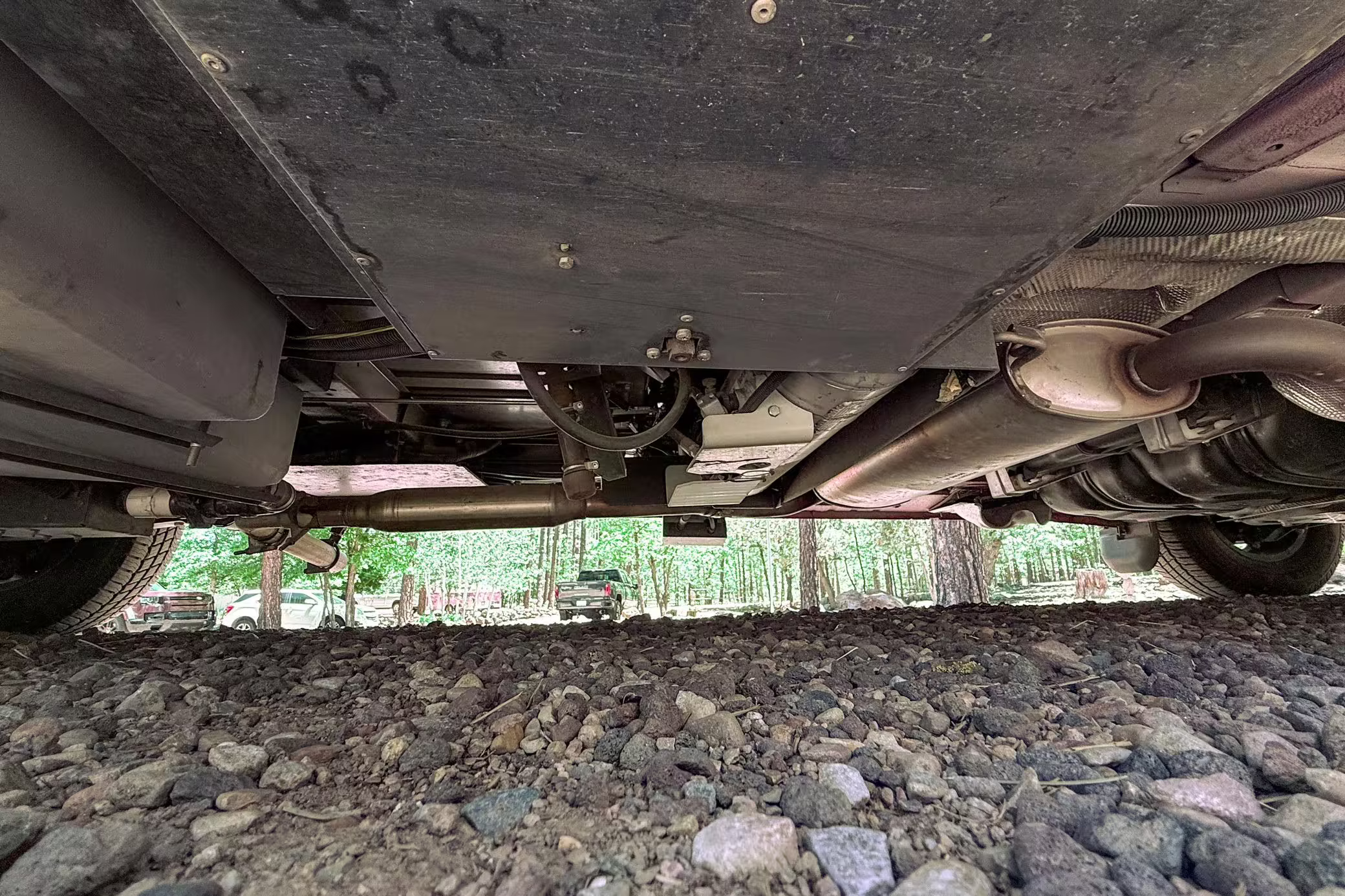 Awning and passenger-side rear mudflap missing