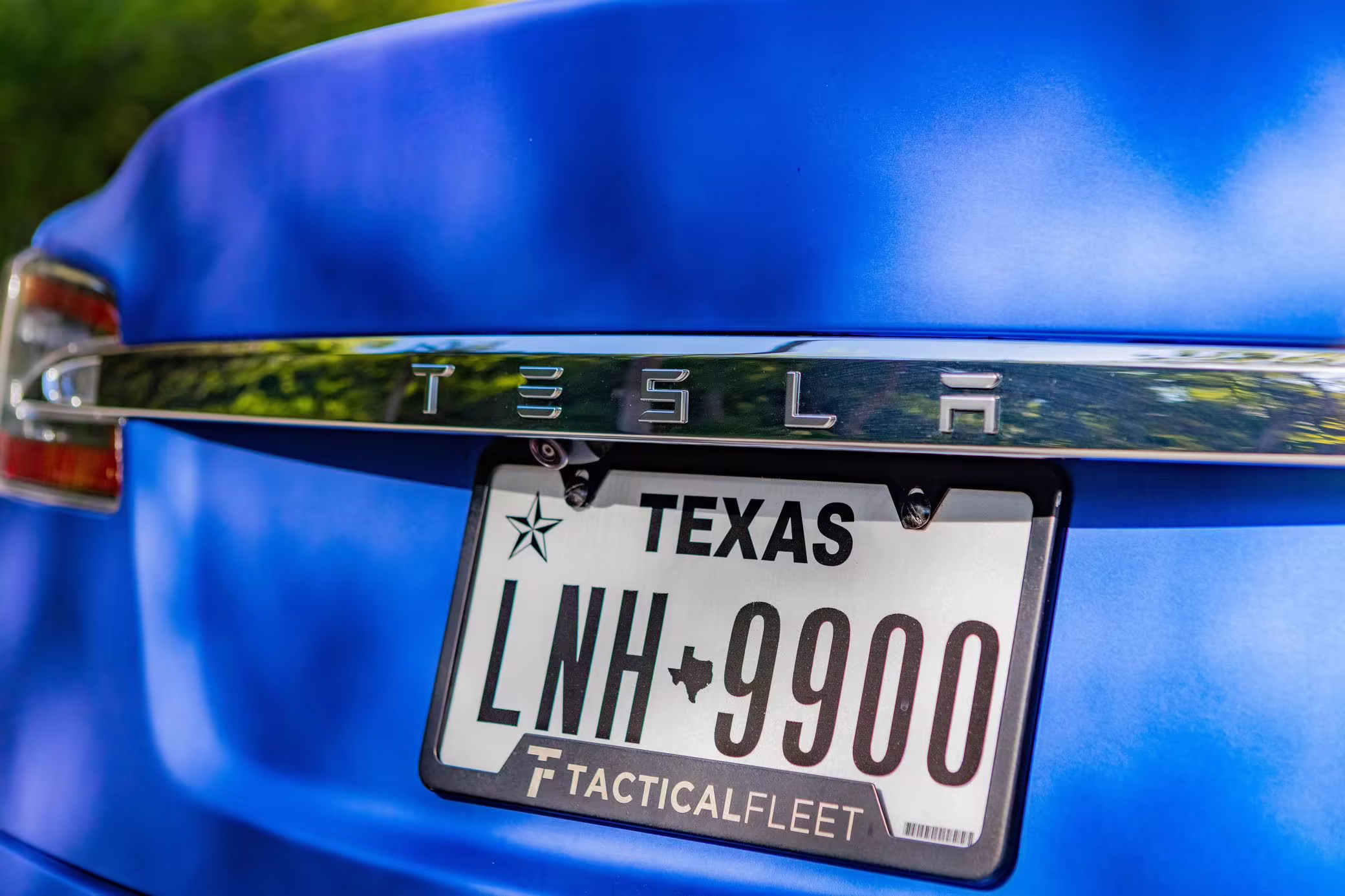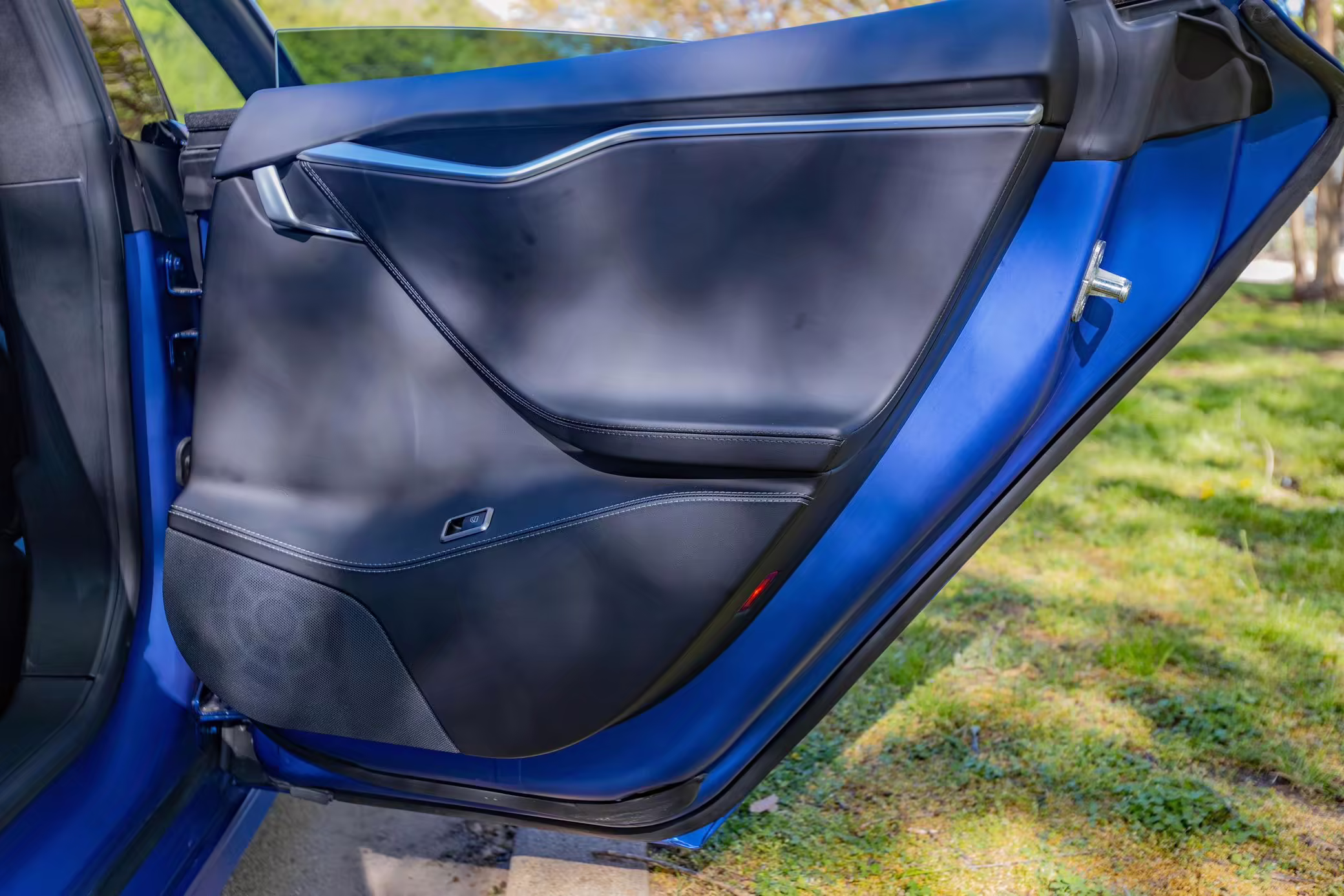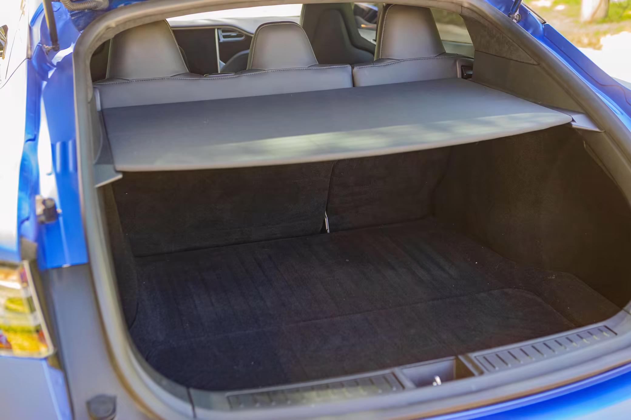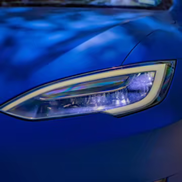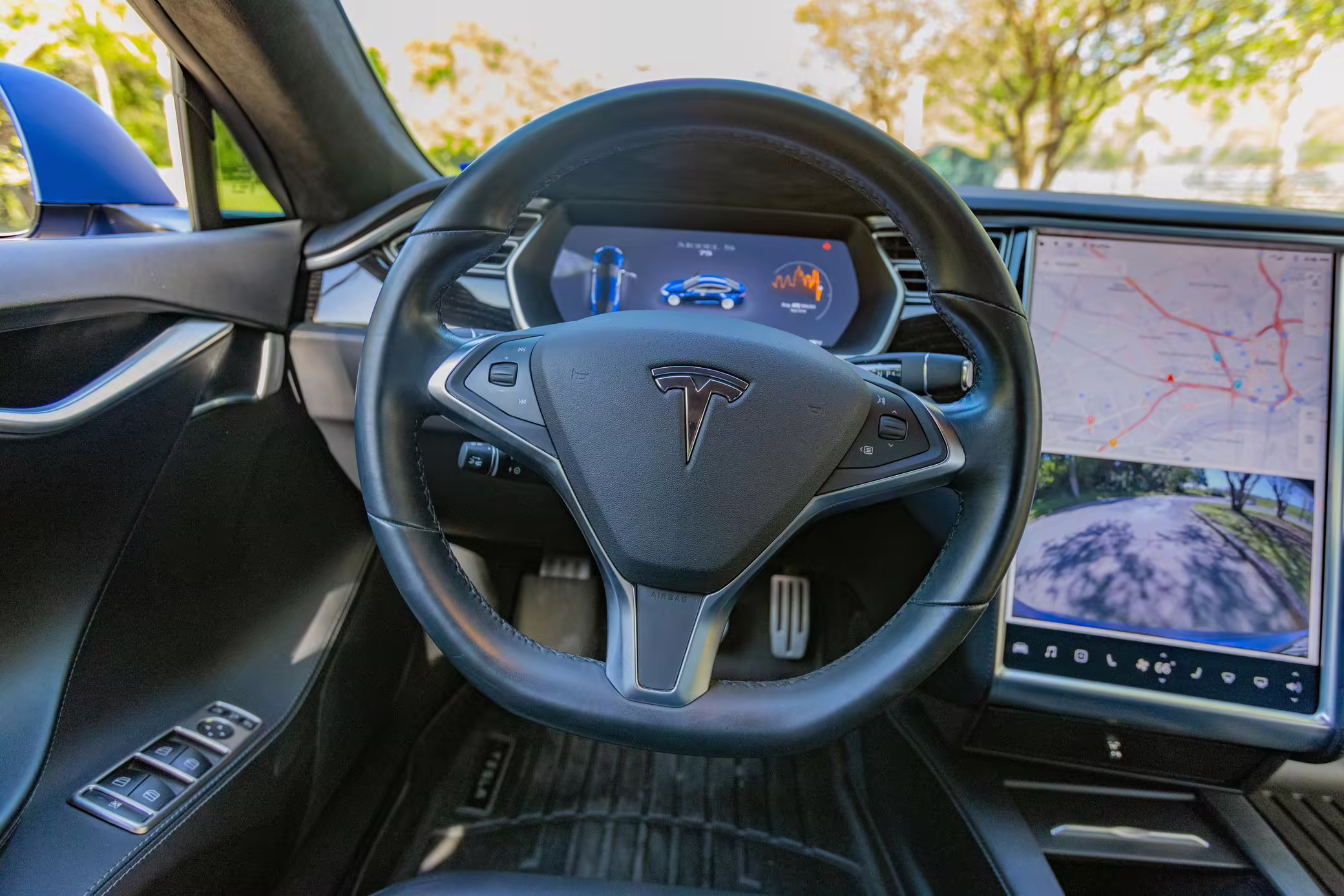 2016 Tesla Model S 75, finished in blue with an Avery Intelligent Blue wrap and a black leather interior.