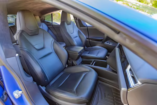 Additional equipment includes Tesla’s Autopilot, heated and power-adjustable front seats, a 17-inch touchscreen display, and more as detailed below.