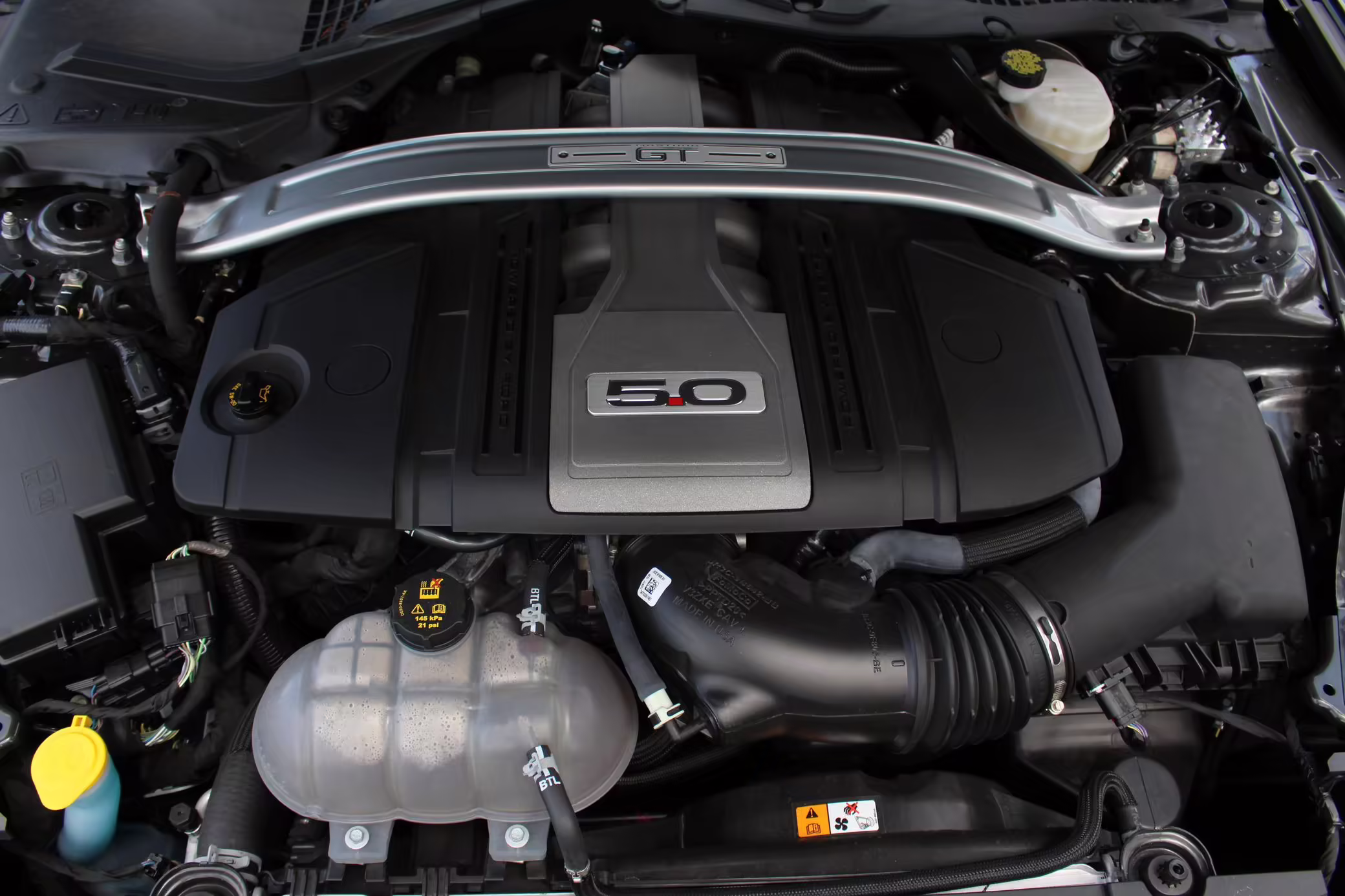 Power comes from a 5.0-liter Coyote V8, rated at 460 horsepower and 420 lb-ft of torque. Output is sent to the rear wheels through a 10-speed automatic transmission.