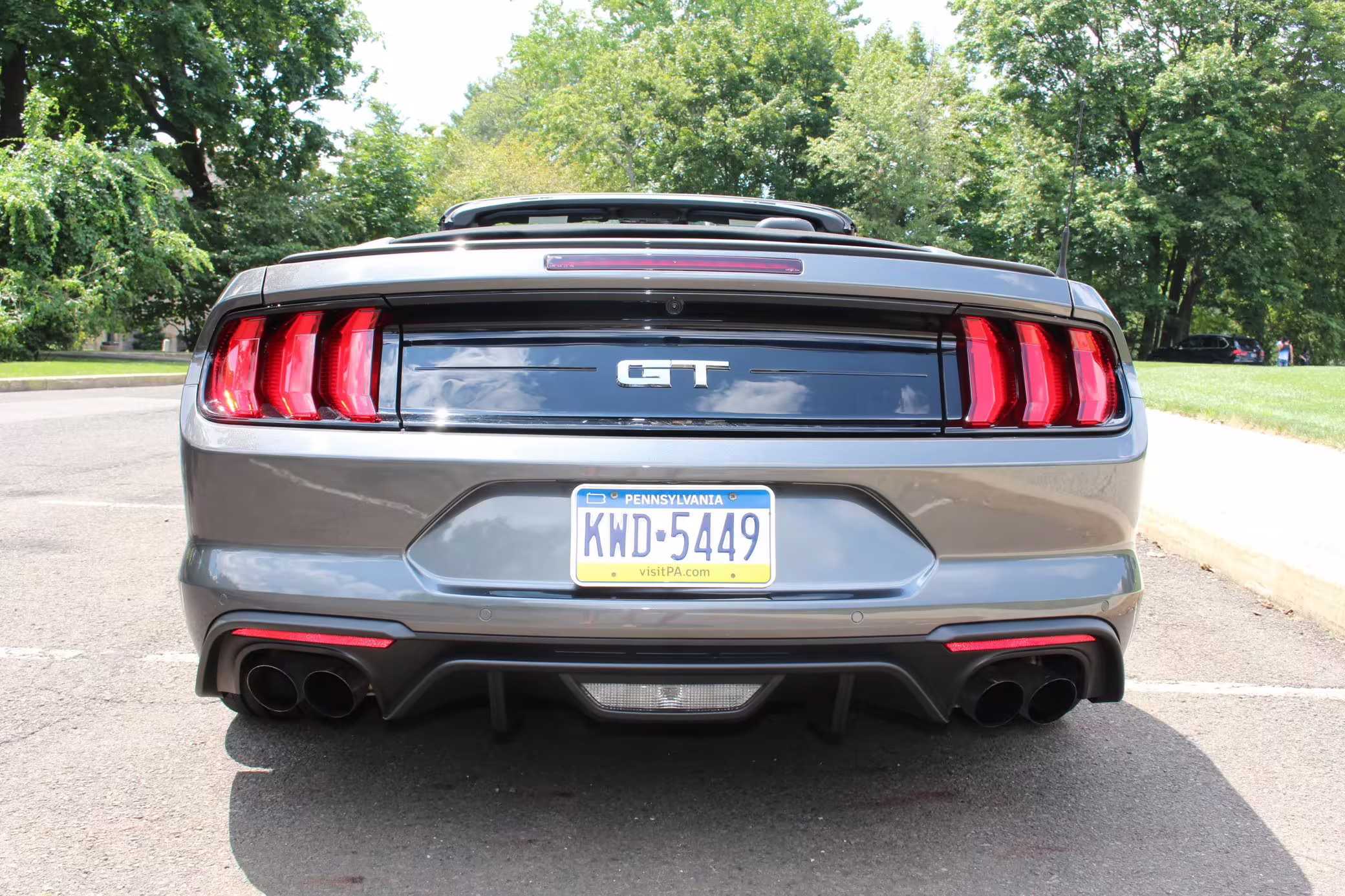 2018 Ford Mustang GT Convertible, finished in Gunmetal Grey with a black leather interior.