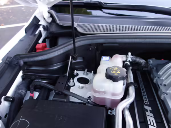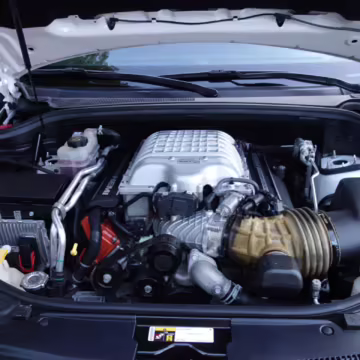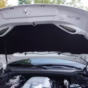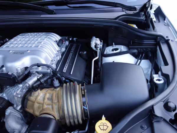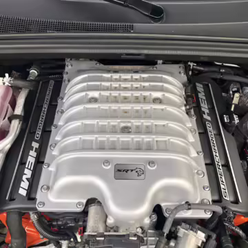 • Power for this Trackhawk comes from a supercharged 6.2-liter Hellcat V8, which produces 707 horsepower and 645 lb-ft of torque. It spins the 4 wheels via an 8-speed automatic transmission linked to steering wheel-mounted shift paddles.