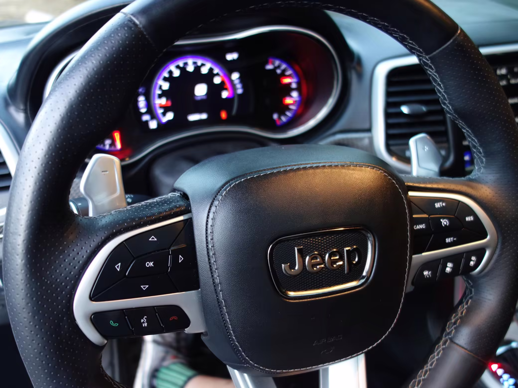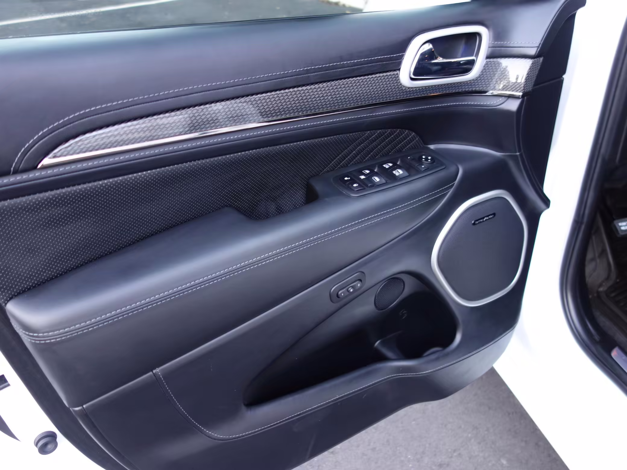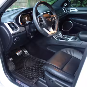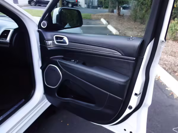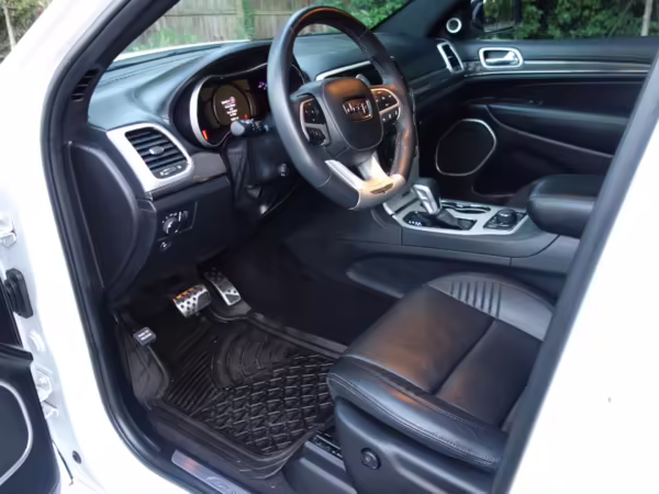 • Jeep positioned the Trackhawk model at the top of the Grand Cherokee range, and this one is particularly well equipped. It features the optional Laguna leather interior, a dual-pane sunroof, and a 19-speaker sound system made by Harman-Kardon.
