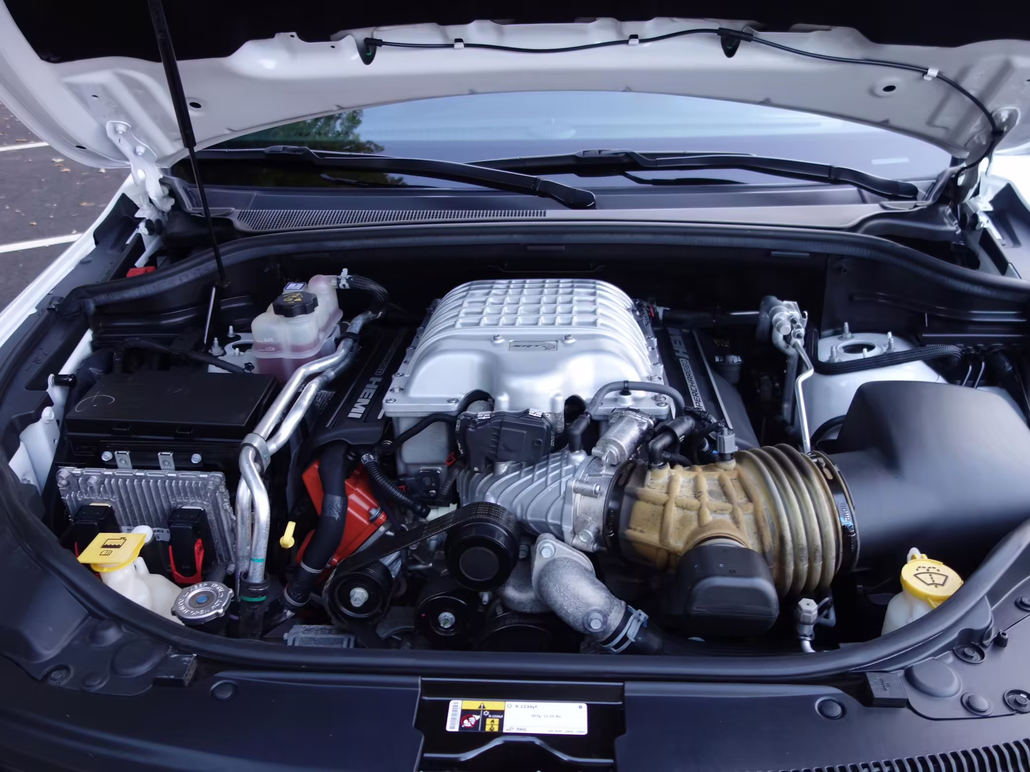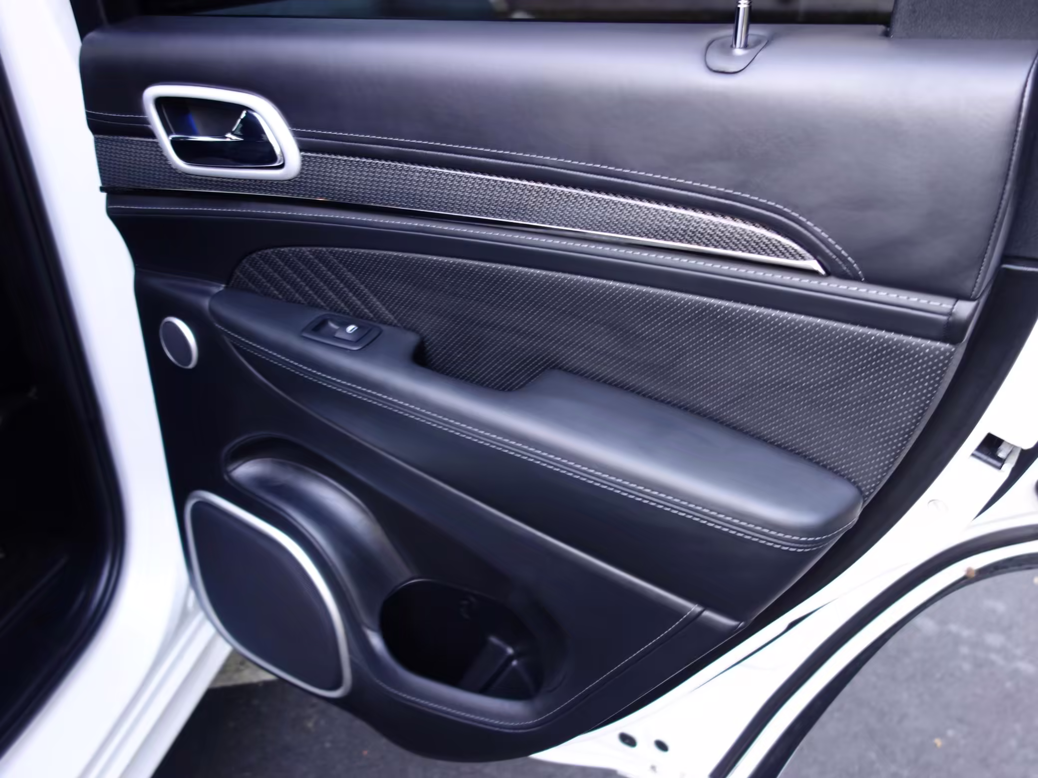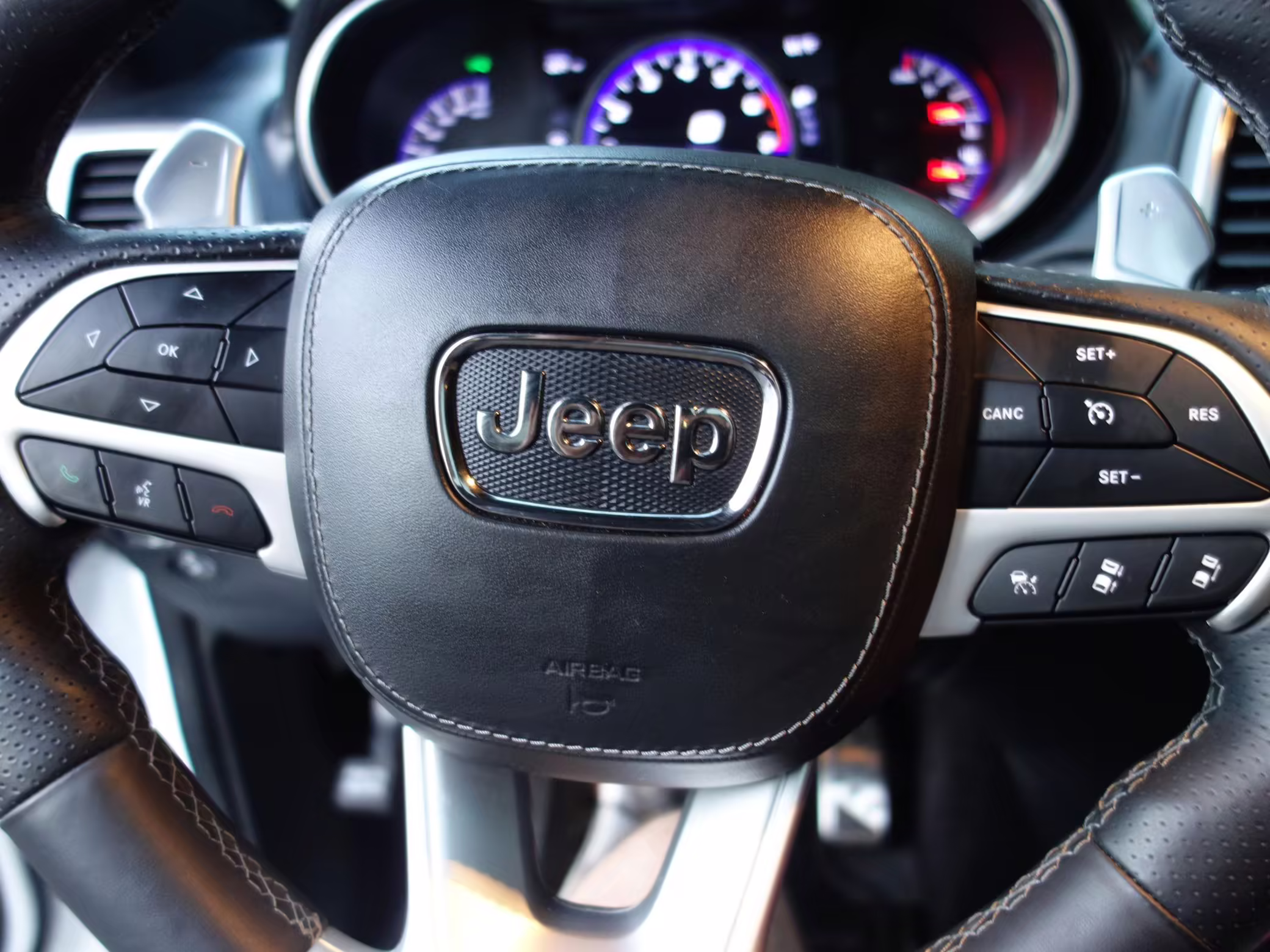 • Jeep positioned the Trackhawk model at the top of the Grand Cherokee range, and this one is particularly well equipped. It features the optional Laguna leather interior, a dual-pane sunroof, and a 19-speaker sound system made by Harman-Kardon.