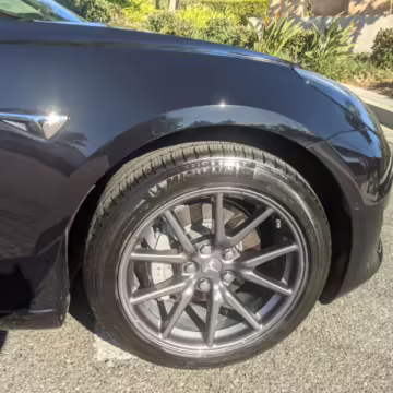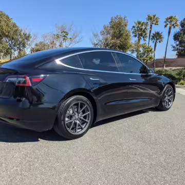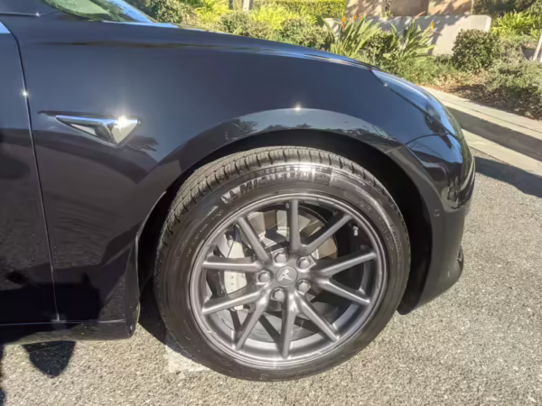 Modifications on this Tesla are limited to the removal of the aero wheel caps and window tint.