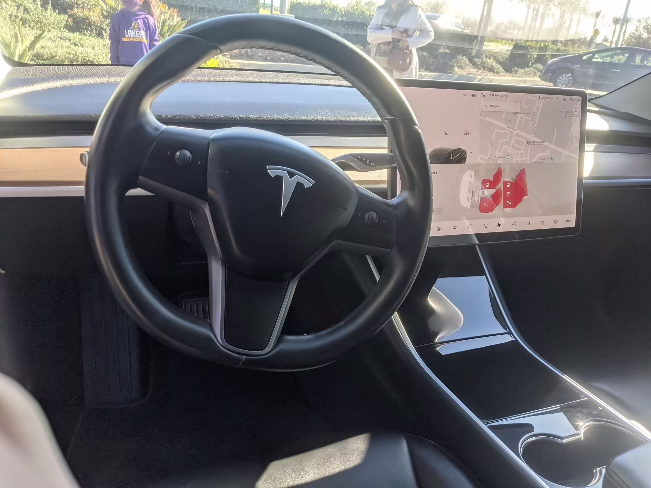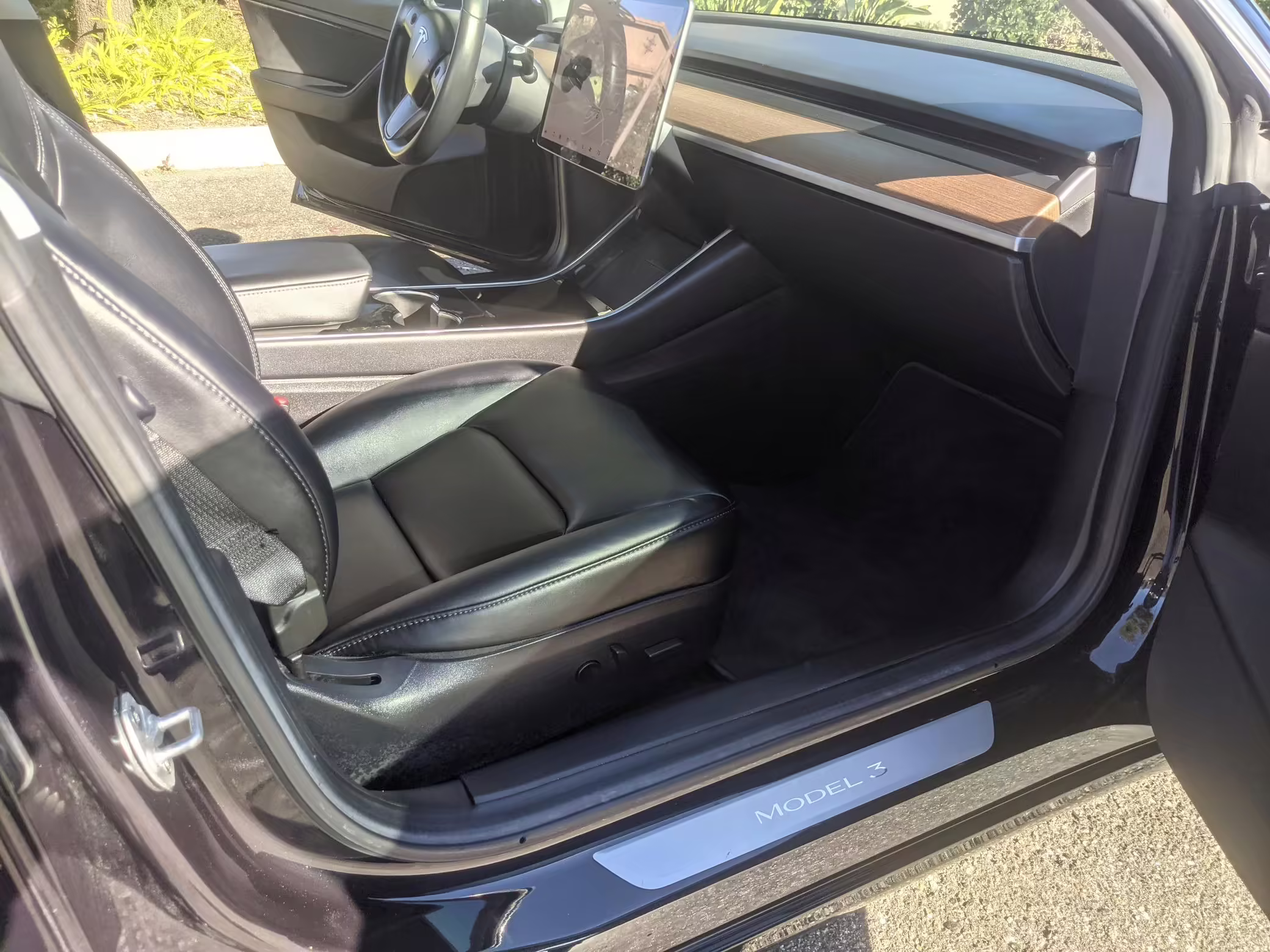 This Model 3 is well-equipped with Enhanced Autopilot with Summon and the Premium Upgrades Package, which adds features such as heated seats, premium upholstery, open-pore wood trim, a panoramic glass roof, and the Premium Audio system.