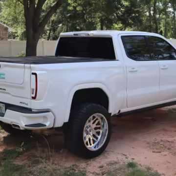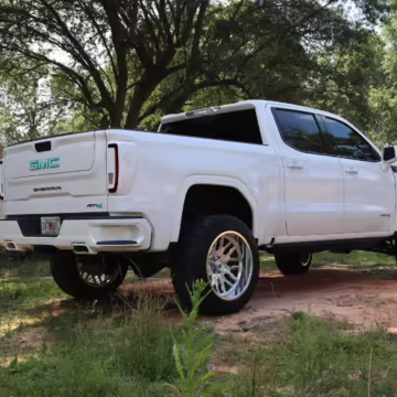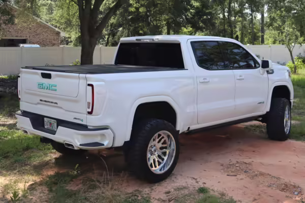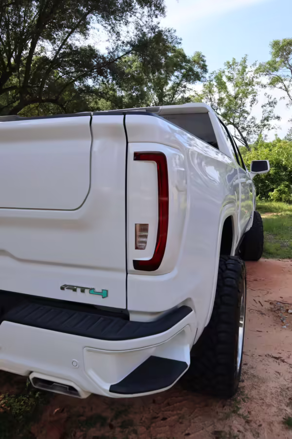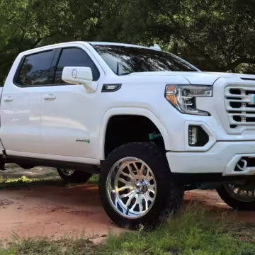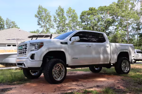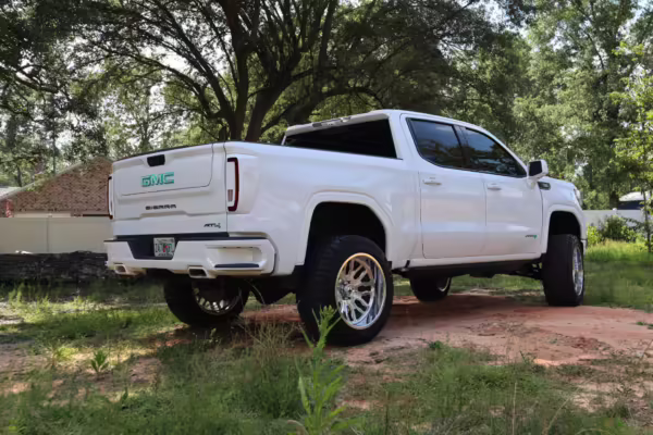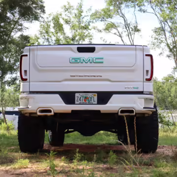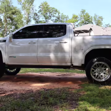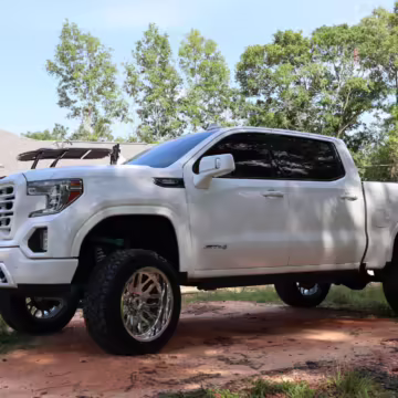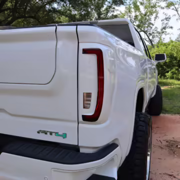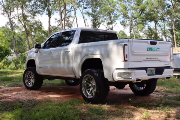 The newest generation of the GMC Sierra is a cool rig that sets itself apart from its Chevrolet sibling with tough looks – and the “AT4” model is the off-road variant that boasts a 2-inch lift, skid plates, a terrain-selectable traction control system, and a locking rear differential. This particular AT4 is equipped with the desirable 3.0-liter Duramax turbodiesel engine, and it’s been modified with a 6-inch lift, larger wheels and tires, Fox shocks, color-matched body trim, power-retractable side steps, a custom speaker system, and more.