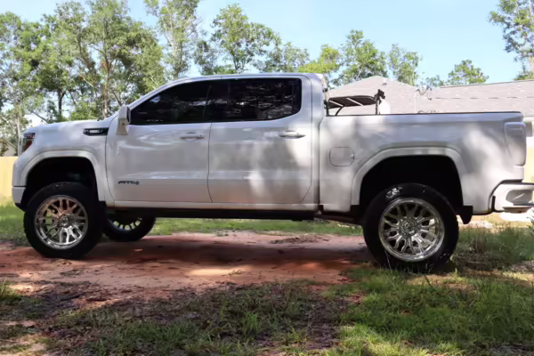 A partial list of modifications reported by the seller includes a set of 22-inch KG1 Forged wheels, a 6-inch BDS lift kit, Fox shocks, color-matched exterior trim, power-retractable side steps, and a bed tonneau cover.