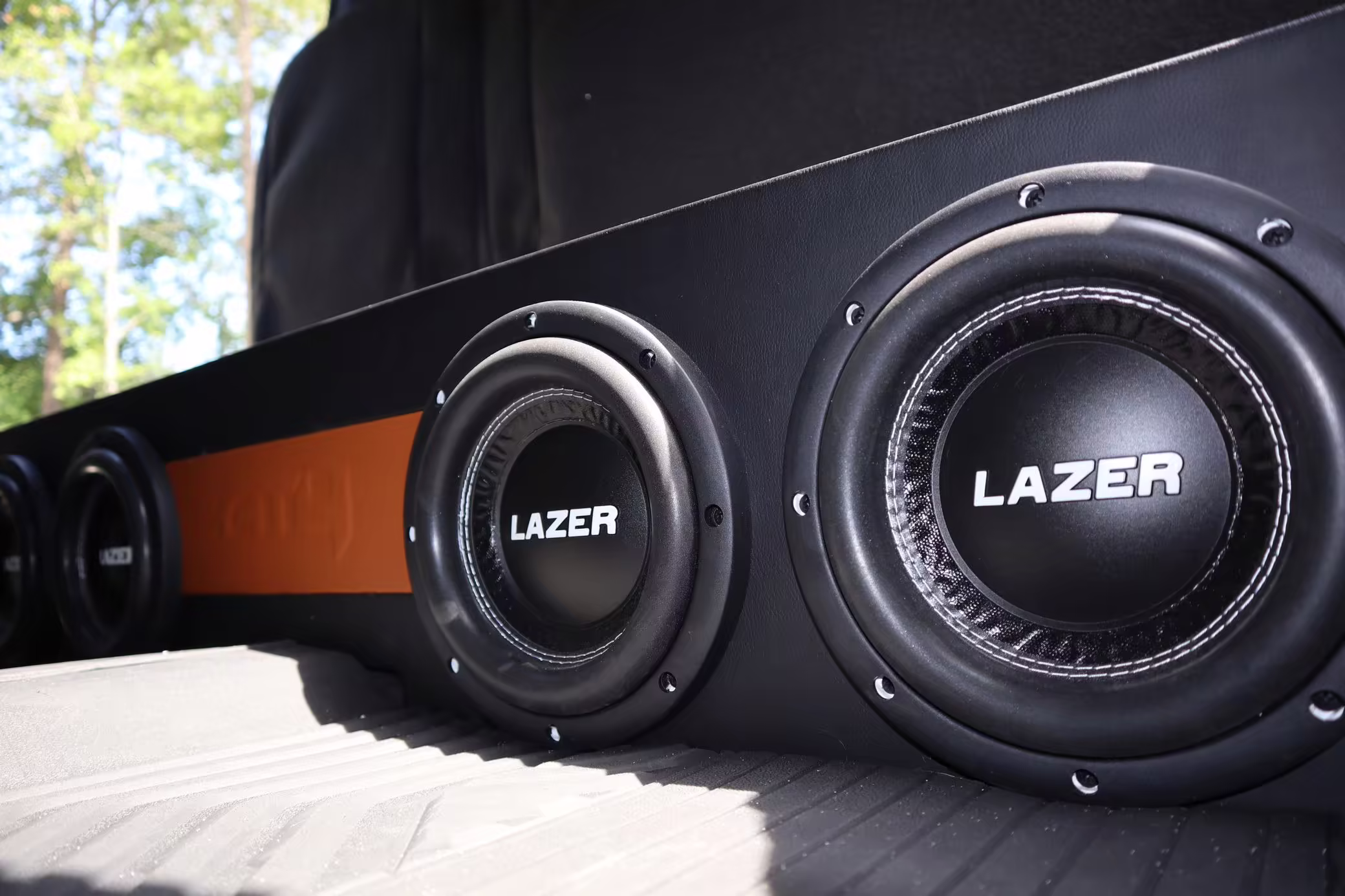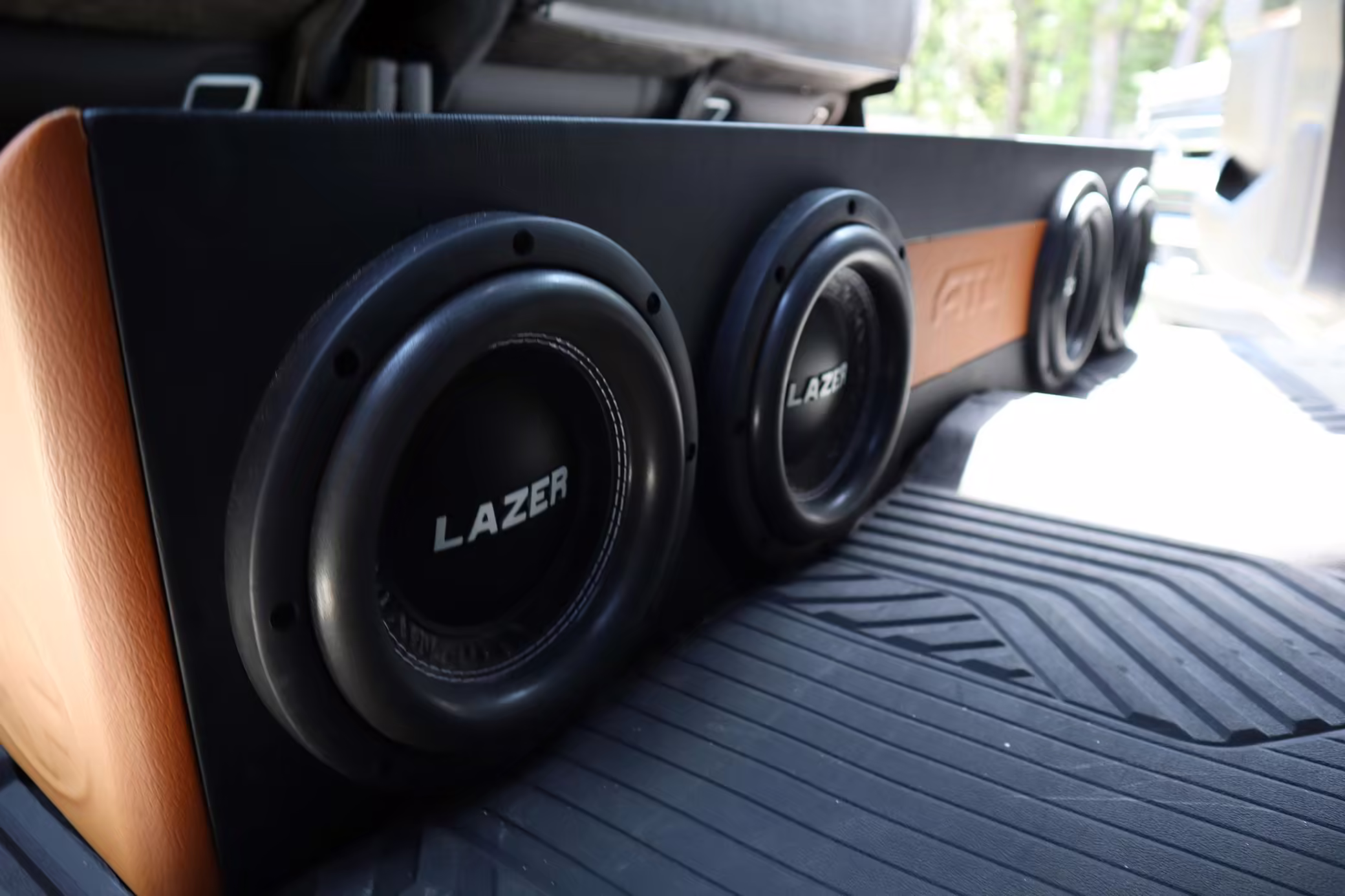 (4) 8-inch Laser Industries subwoofers mounted under rear seat