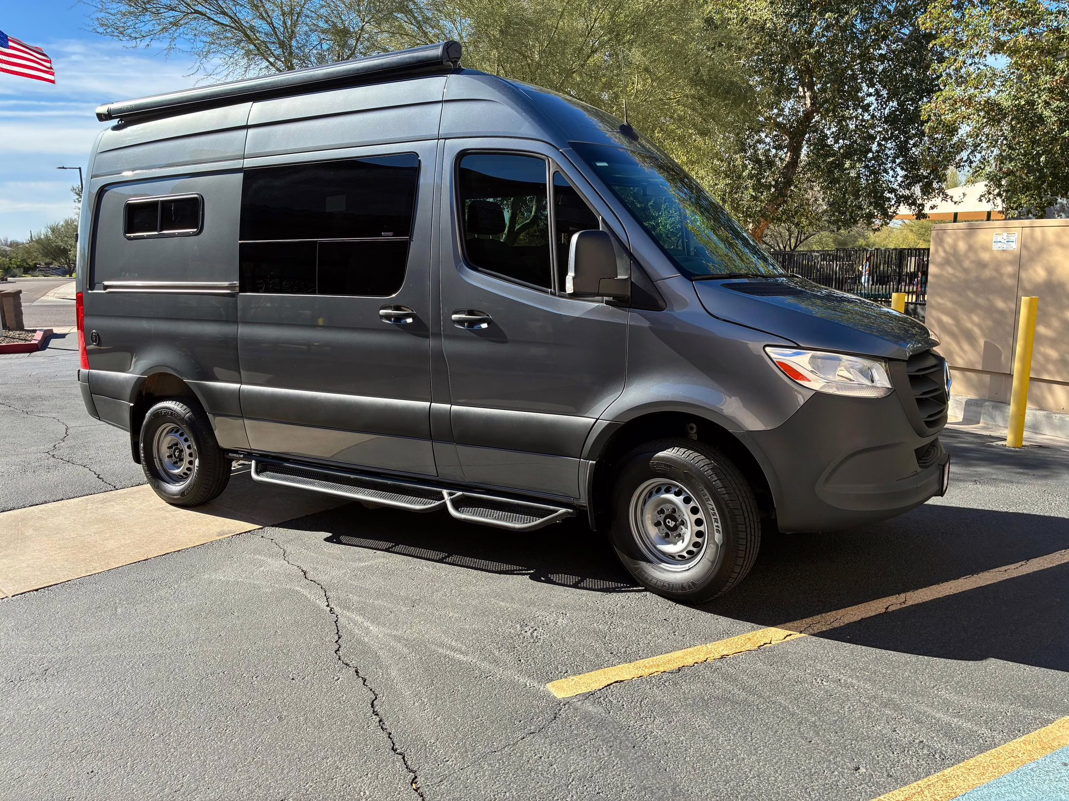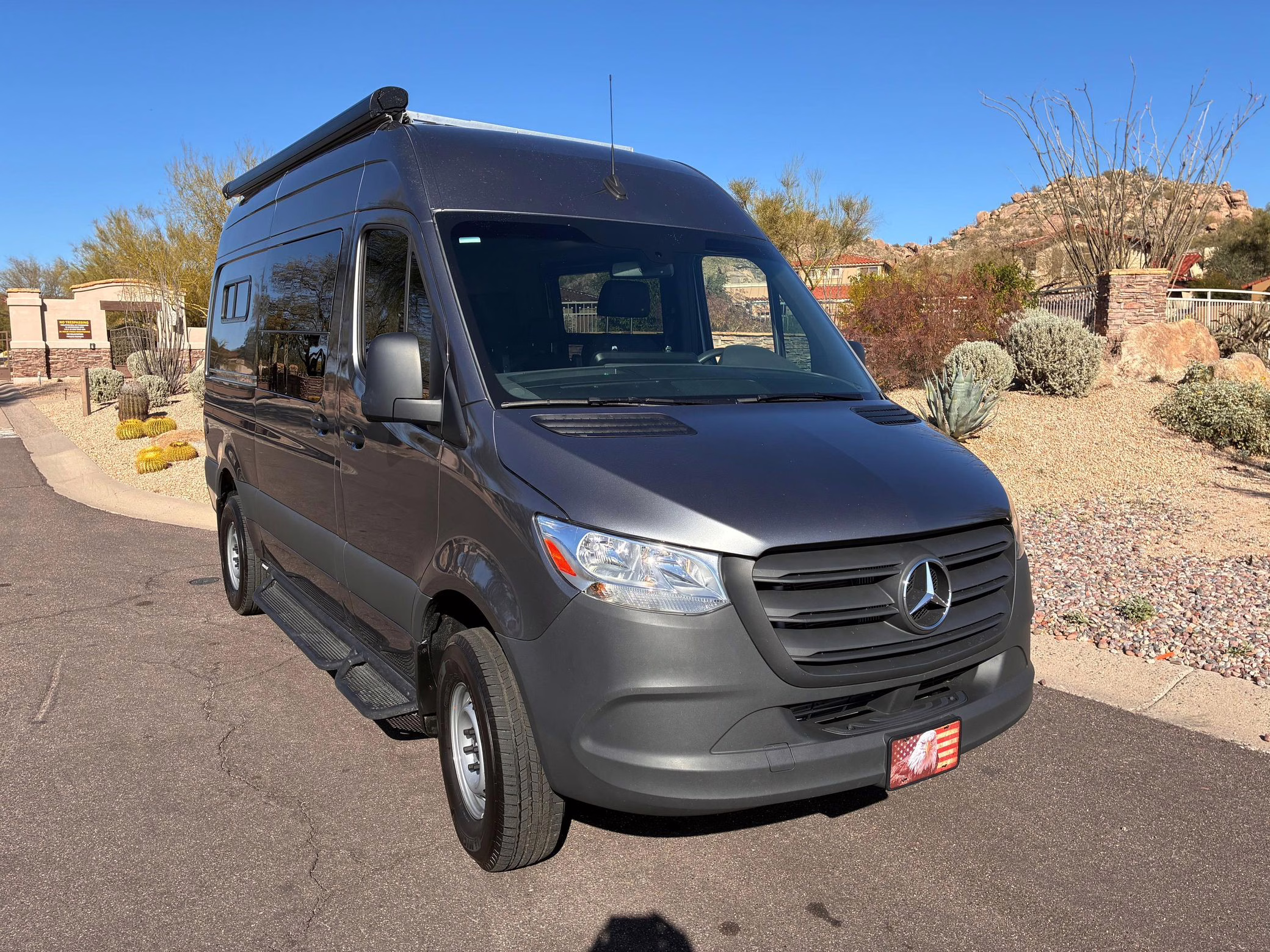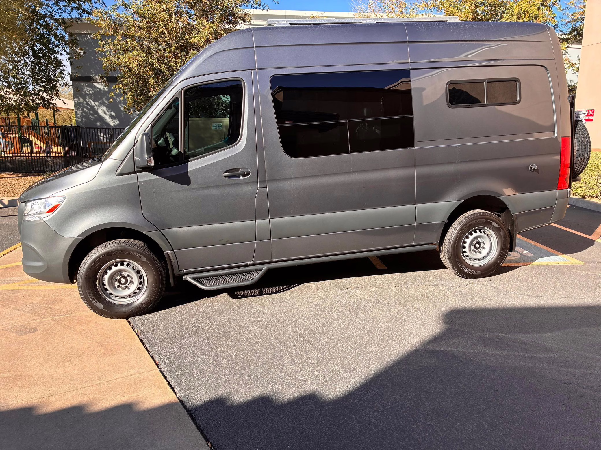 2020 Mercedes-Benz Sprinter 2500 Apex Van Designs RV Conversion, finished in Selenite Grey Metallic with a black interior.
