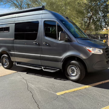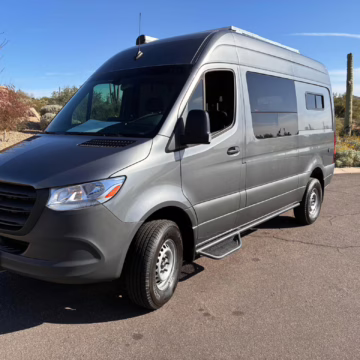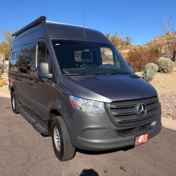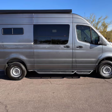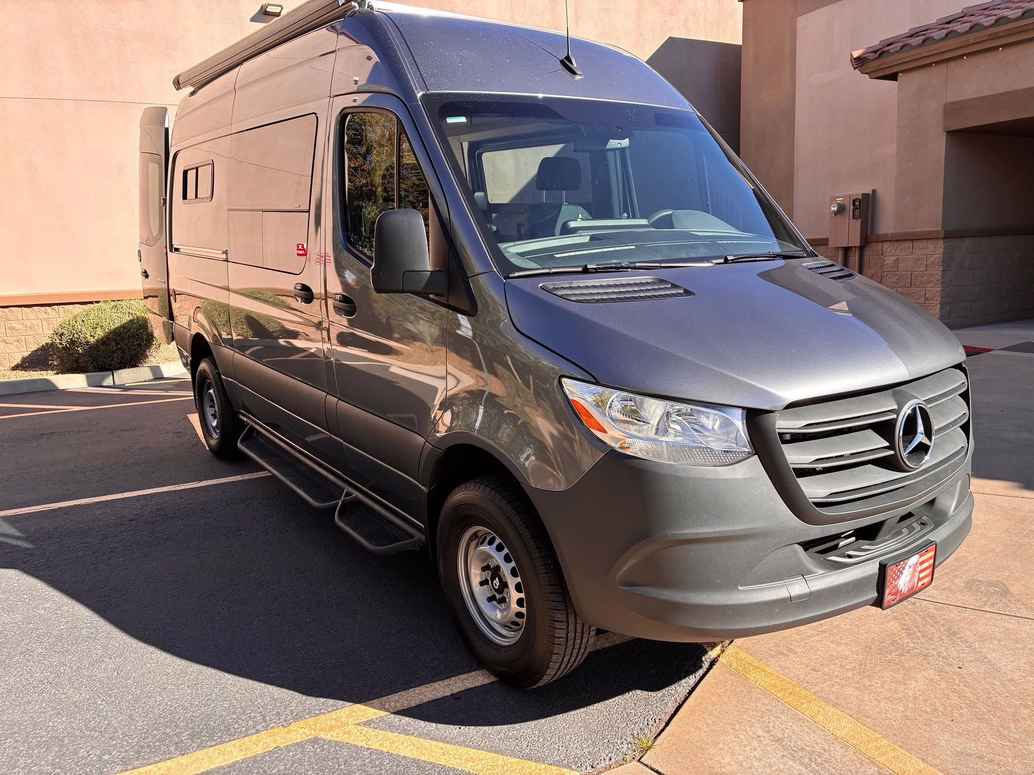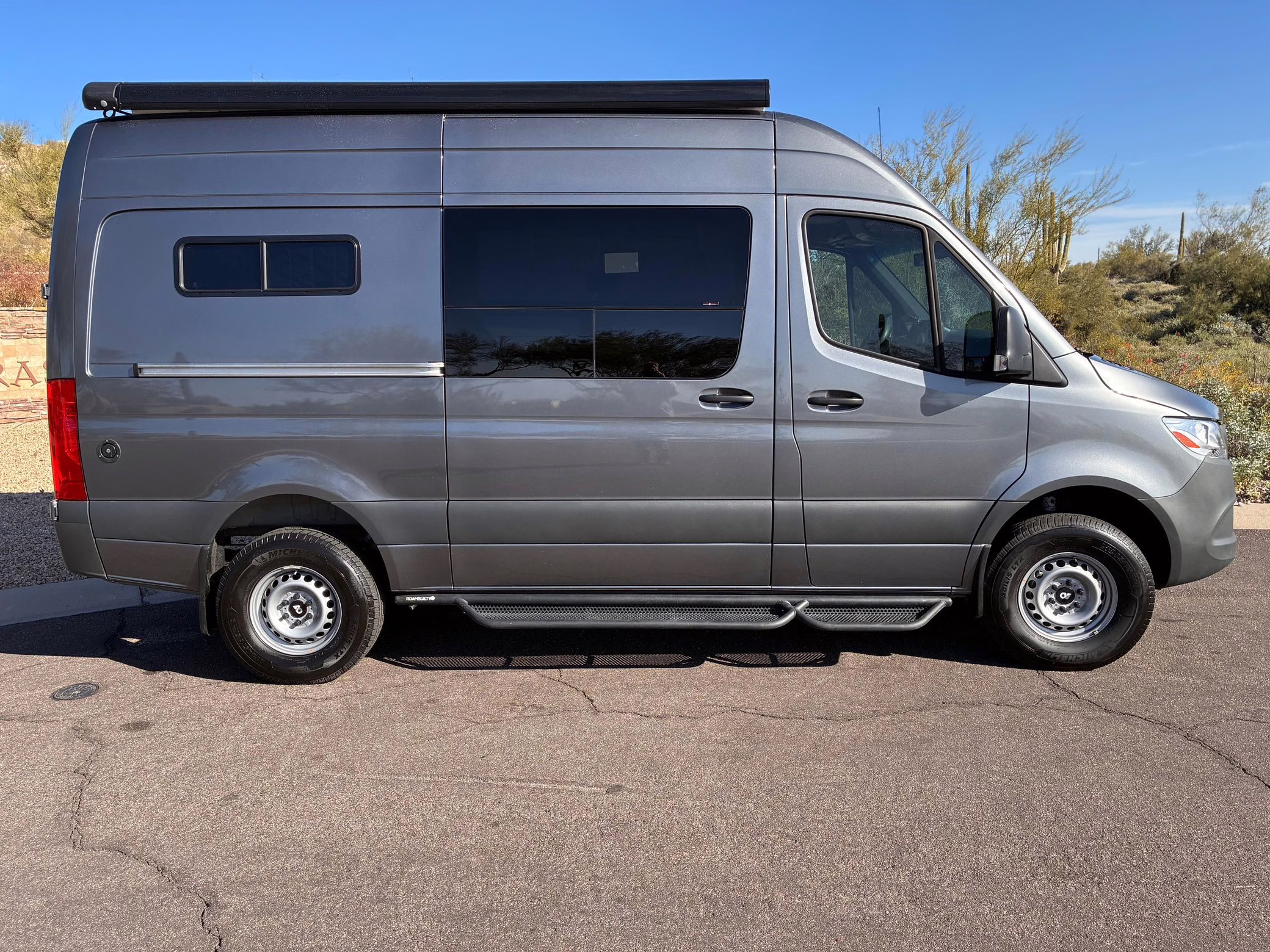 2020 Mercedes-Benz Sprinter 2500 Apex Van Designs RV Conversion, finished in Selenite Grey Metallic with a black interior.