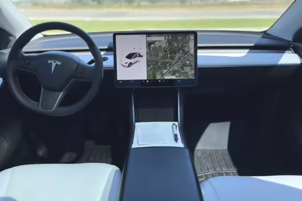 A partial list of notable equipment includes 19-inch “Gemini” wheels, the Premium Interior, a 15-inch touchscreen infotainment system, a navigation system, and Premium Connectivity (with paid subscription) and Full Self-Driving capabilities. Modifications reported by the seller are limited to tinted windows.