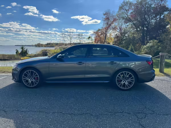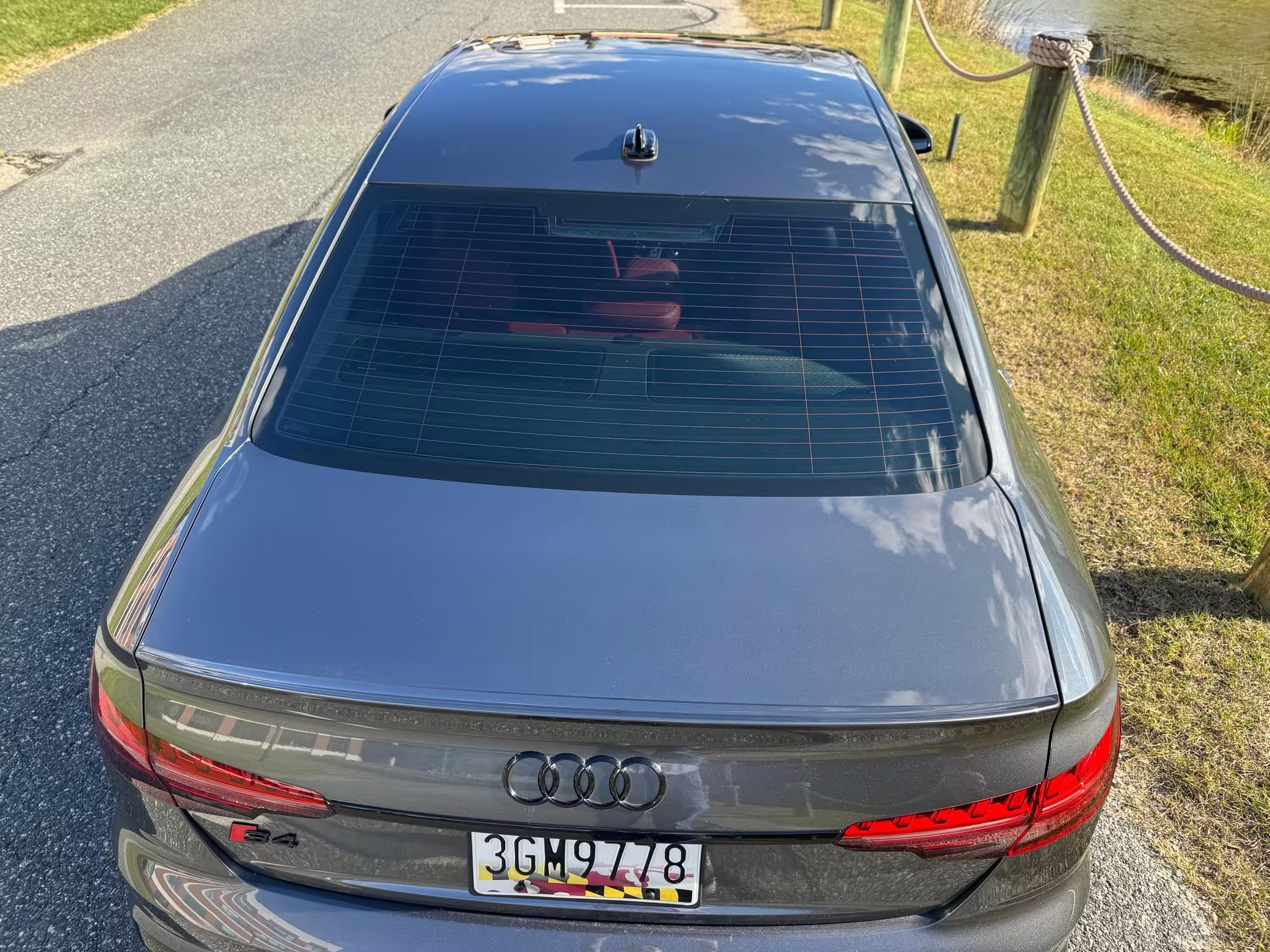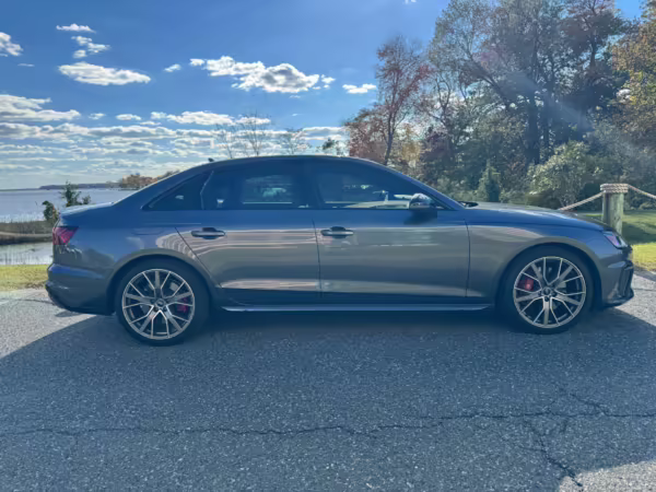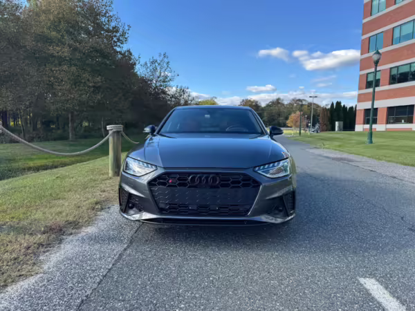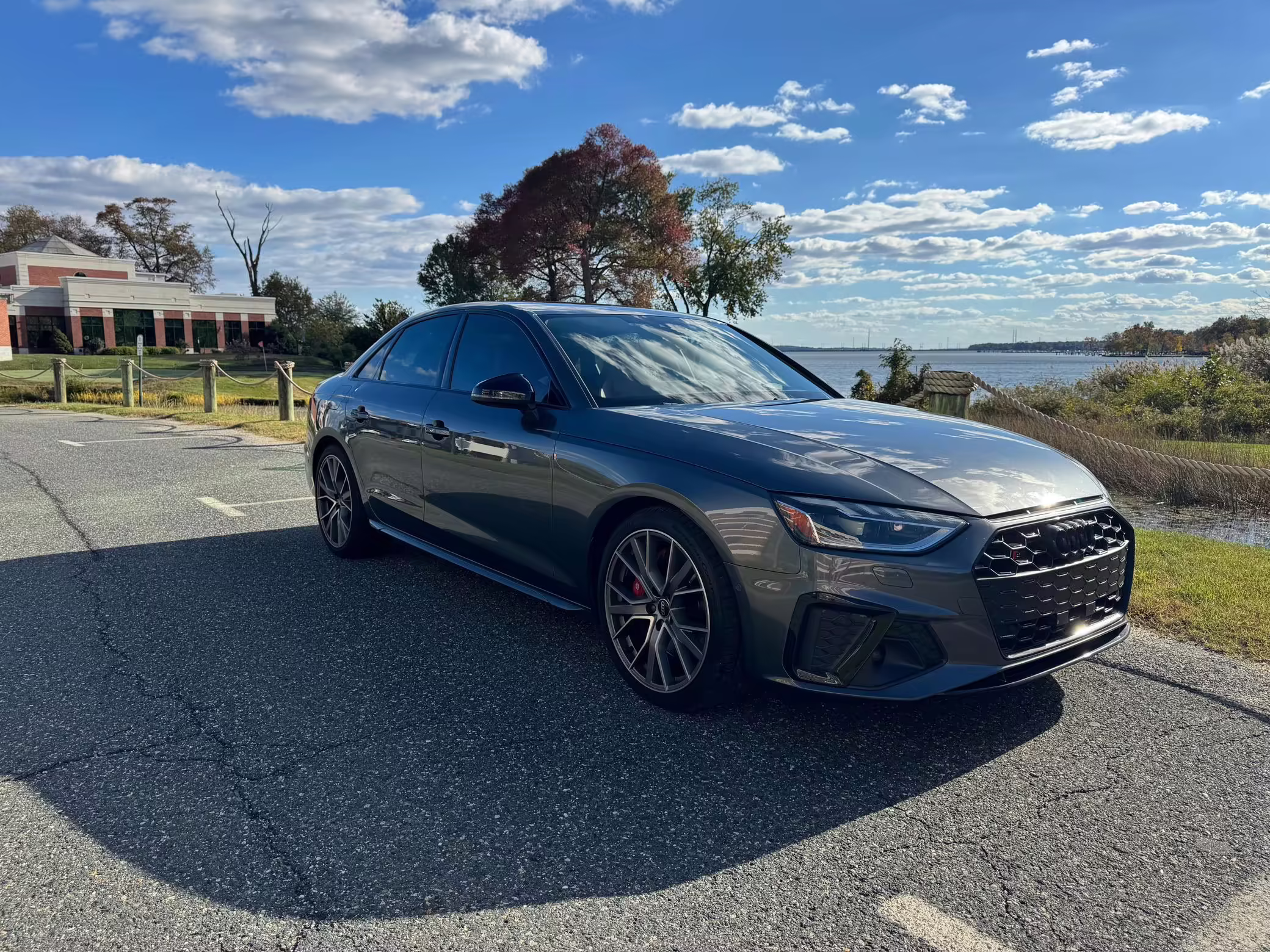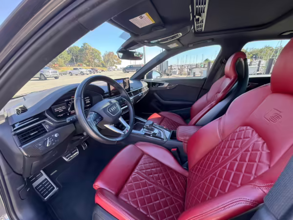 2021 Audi S4 Prestige, finished in Daytona Grey with a Magma Red interior.