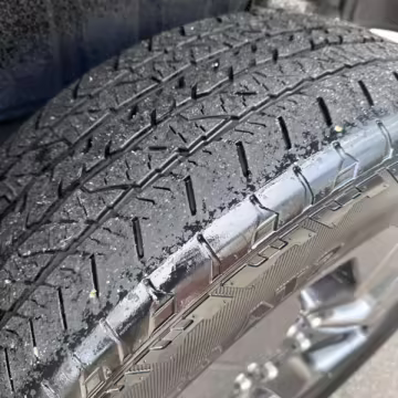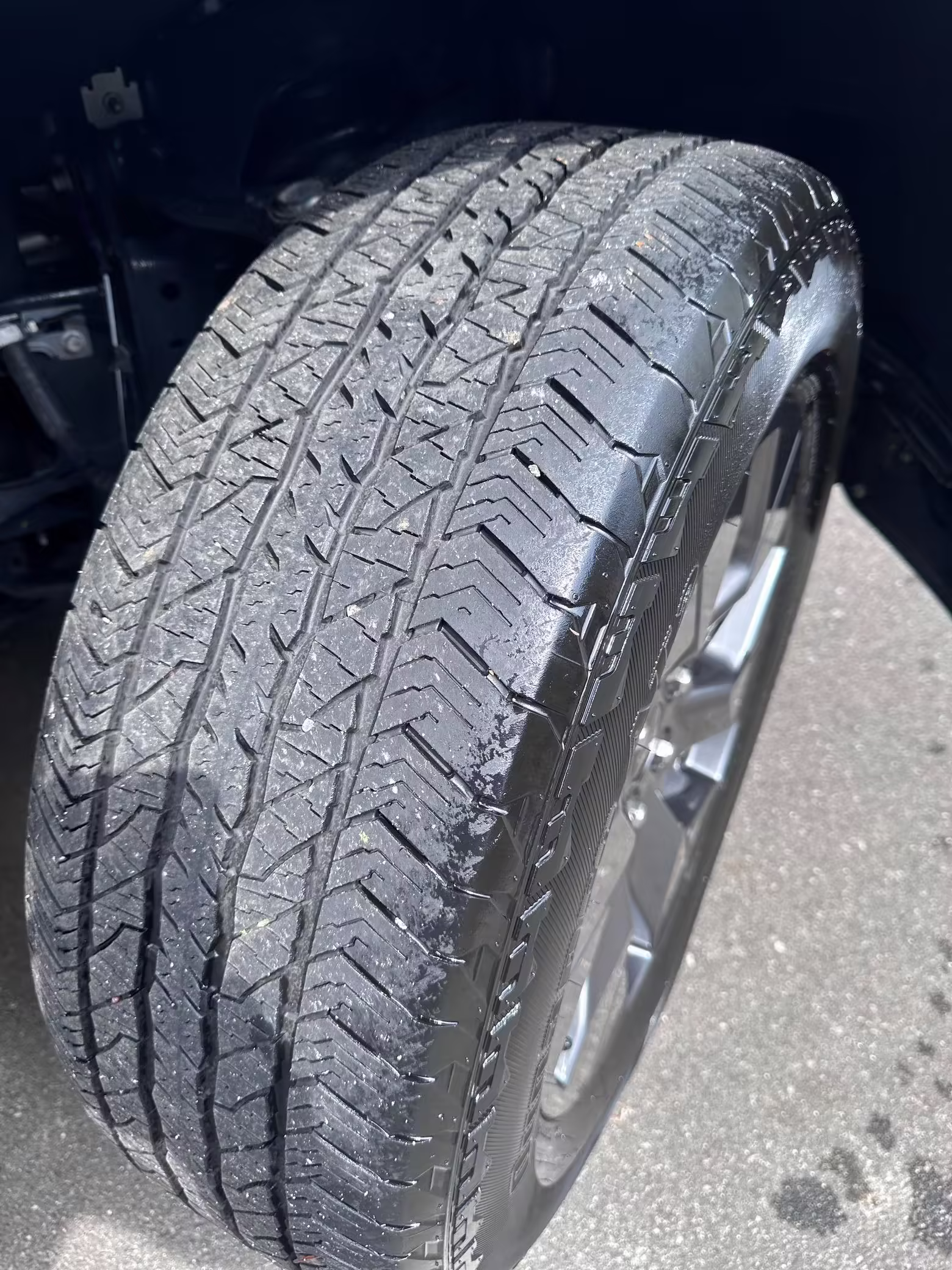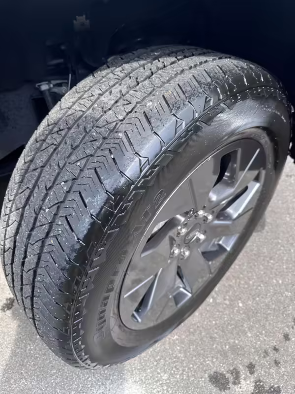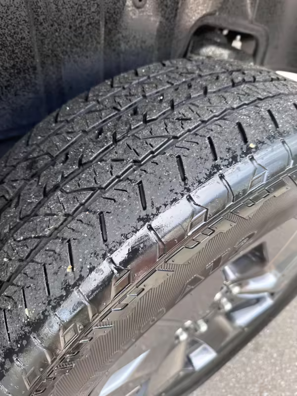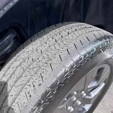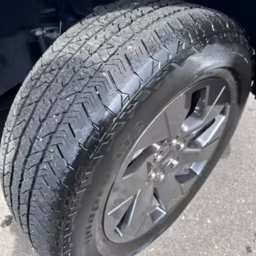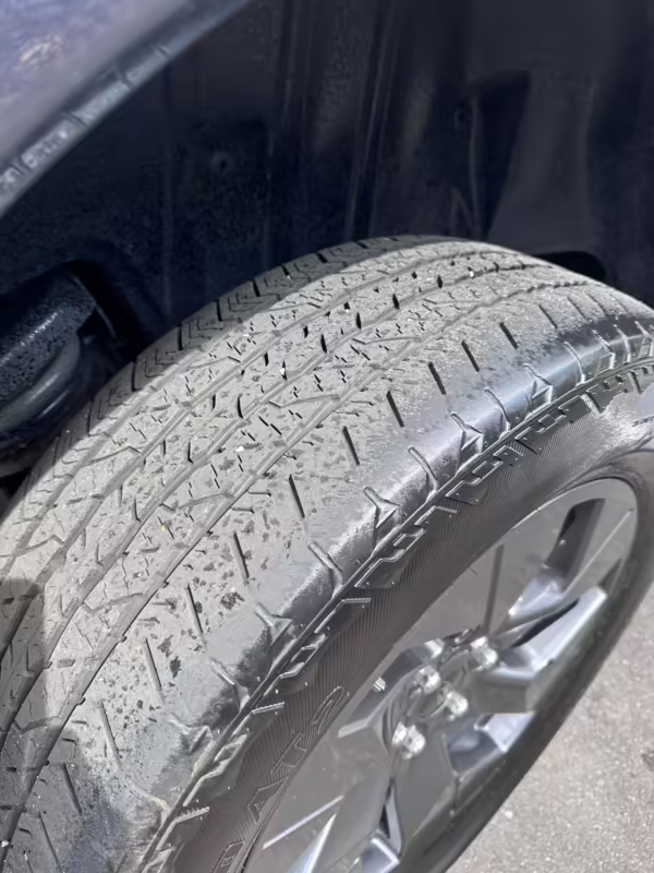 Curb rash on the left-front wheel
