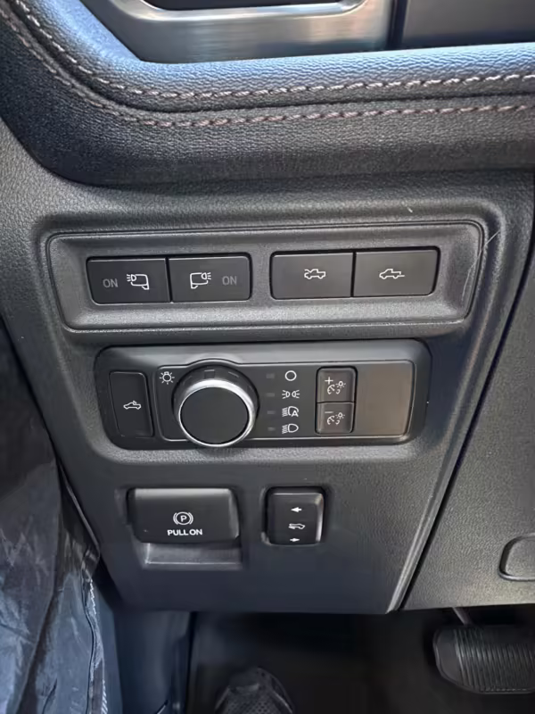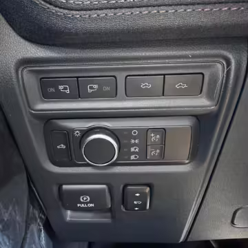 Factory equipment includes the Equipment Group 510A, 20-inch wheels, a trailer hitch, leather upholstery, heated, ventilated, and power-adjustable front seats, power-adjustable pedals, a 15.5-inch touchscreen with Apple/Android CarPlay compatibility, an 8-speaker Bang & Olufsen sound system, and a 360-degree camera.
