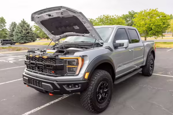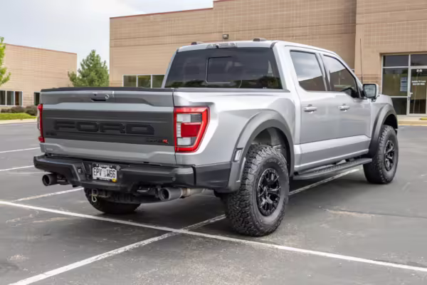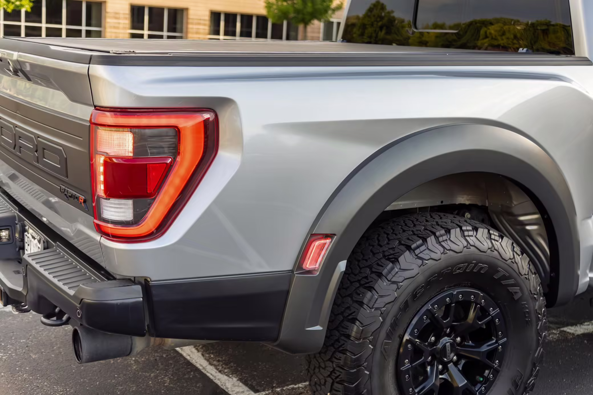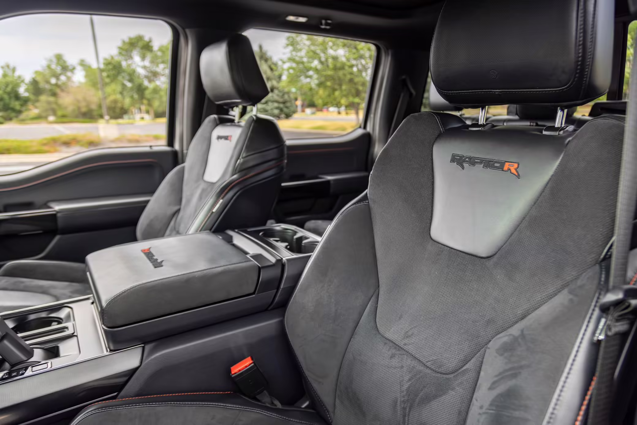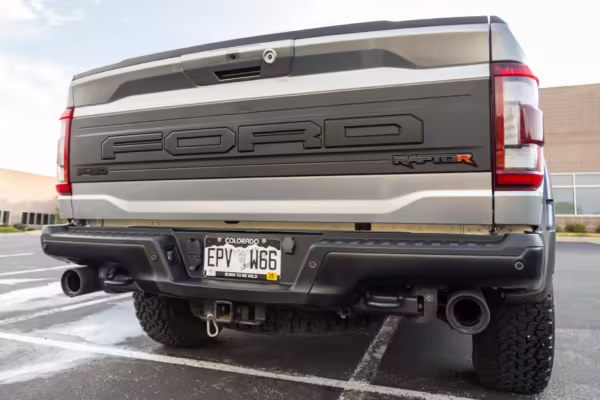 The new Ford F-150 Raptor R is an incredible off-roader intended to compete with the mighty Ram TRX – and it boasts an impressive 700-horsepower supercharged V8, 4-wheel drive, an electronic locking rear differential, FOX Live Valve shocks, and 17-inch beadlock capable wheels with 37-inch tires. This particular Raptor R is also equipped with the Moonroof and Tailgate Package, and it features a few cool upgrades like a BAK Industries Revolve X4s tonneau bed cover.
