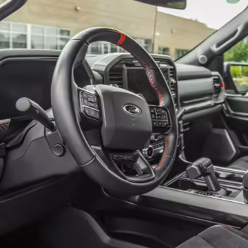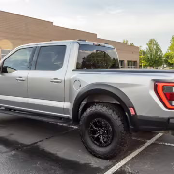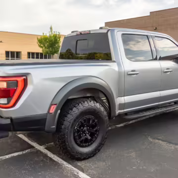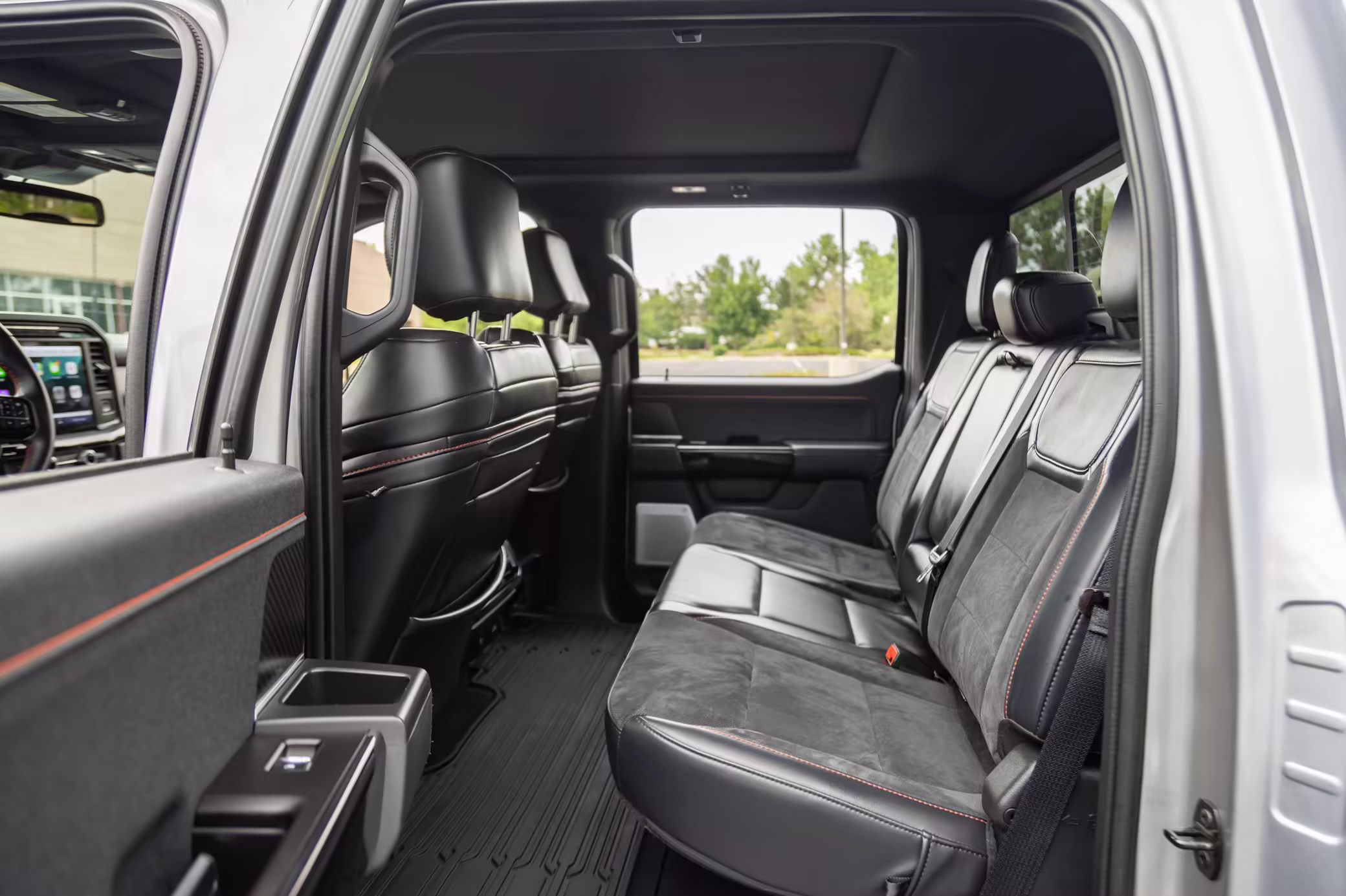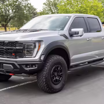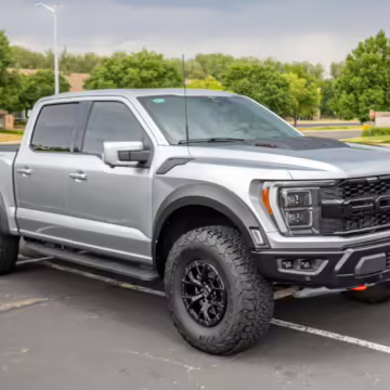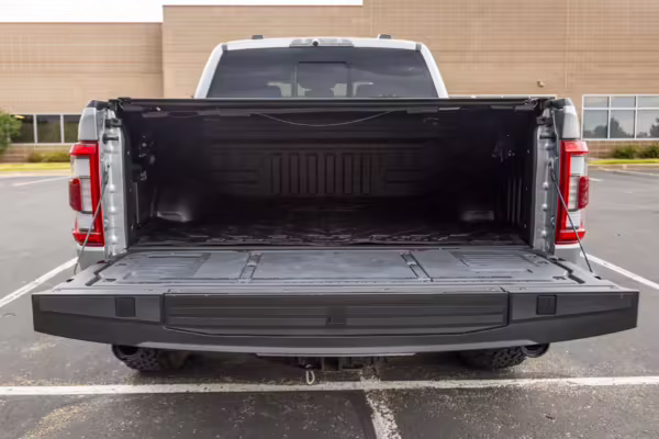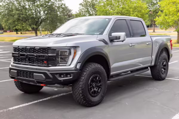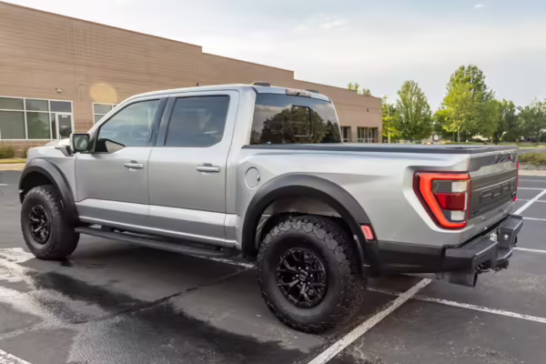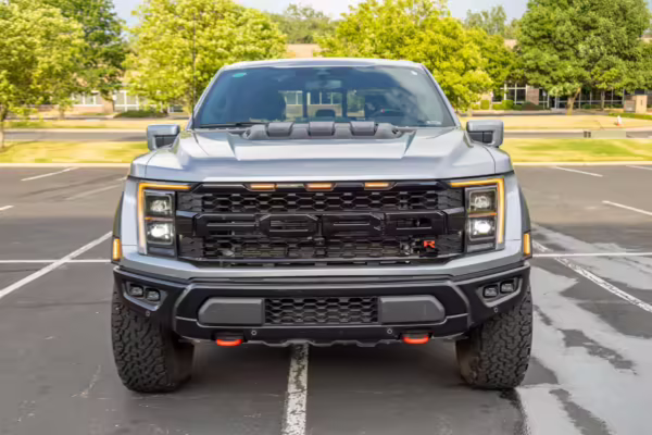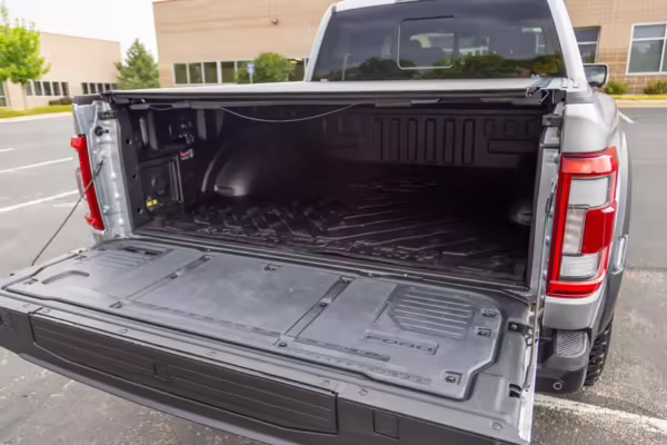 The new Ford F-150 Raptor R is an incredible off-roader intended to compete with the mighty Ram TRX – and it boasts an impressive 700-horsepower supercharged V8, 4-wheel drive, an electronic locking rear differential, FOX Live Valve shocks, and 17-inch beadlock capable wheels with 37-inch tires. This particular Raptor R is also equipped with the Moonroof and Tailgate Package, and it features a few cool upgrades like a BAK Industries Revolve X4s tonneau bed cover.