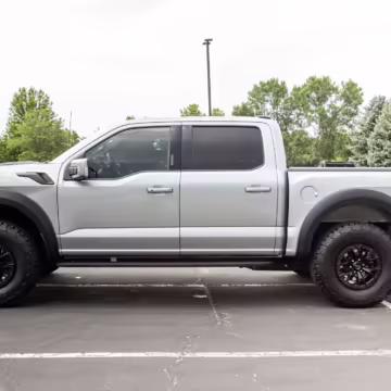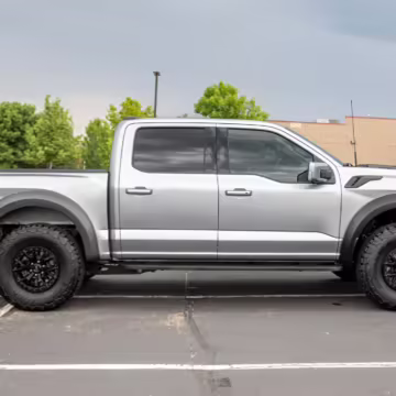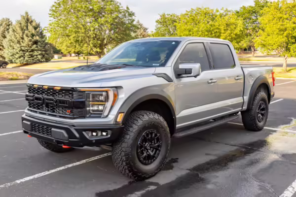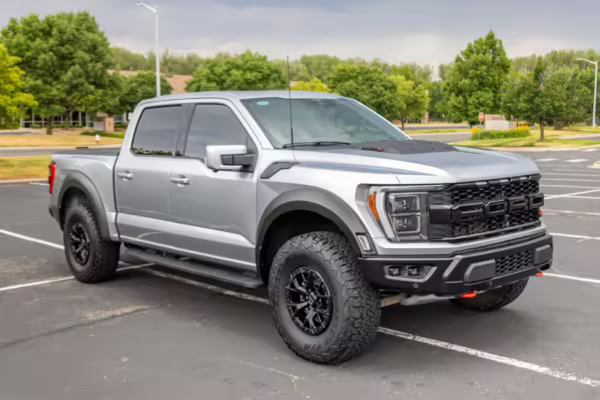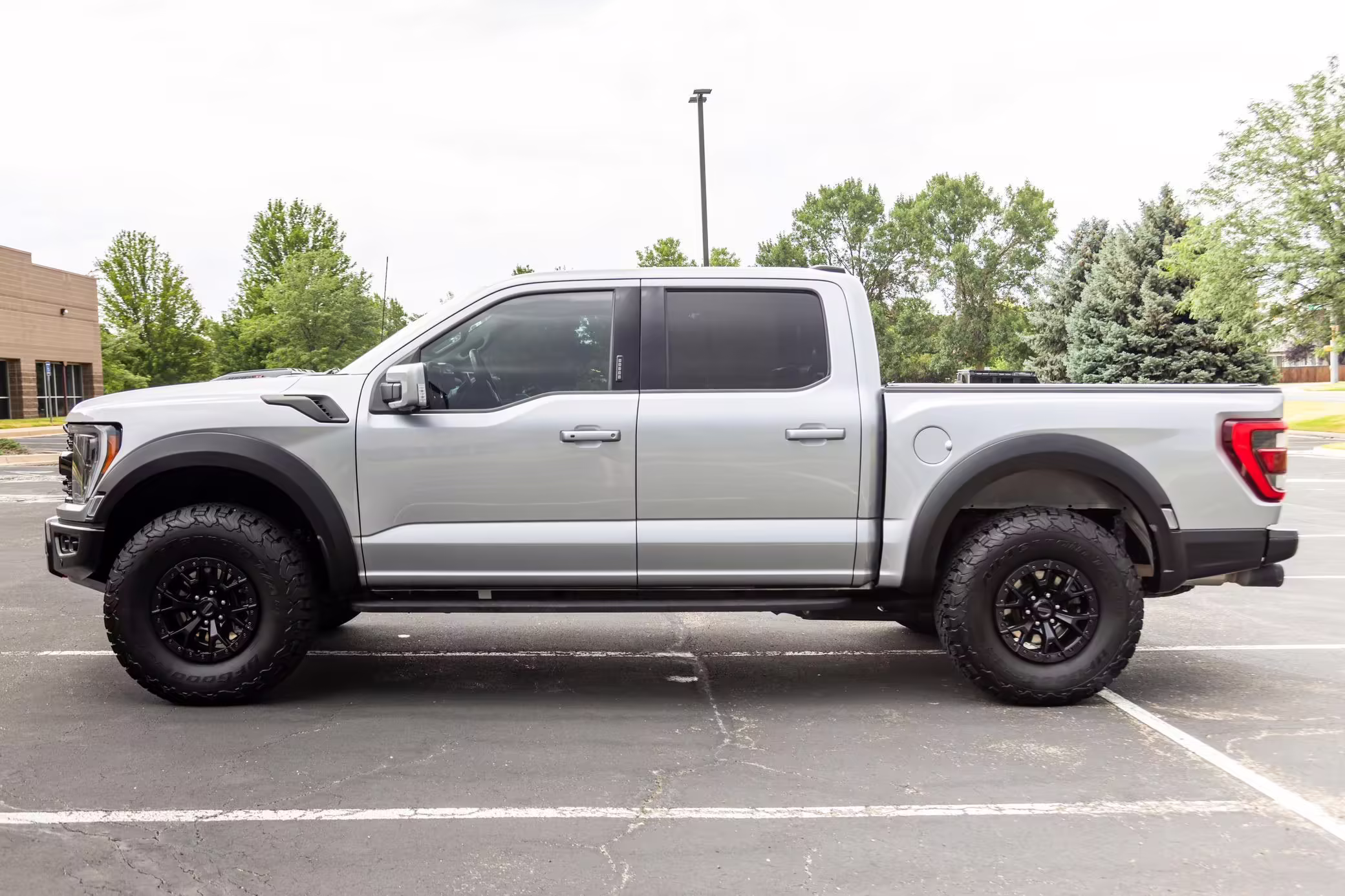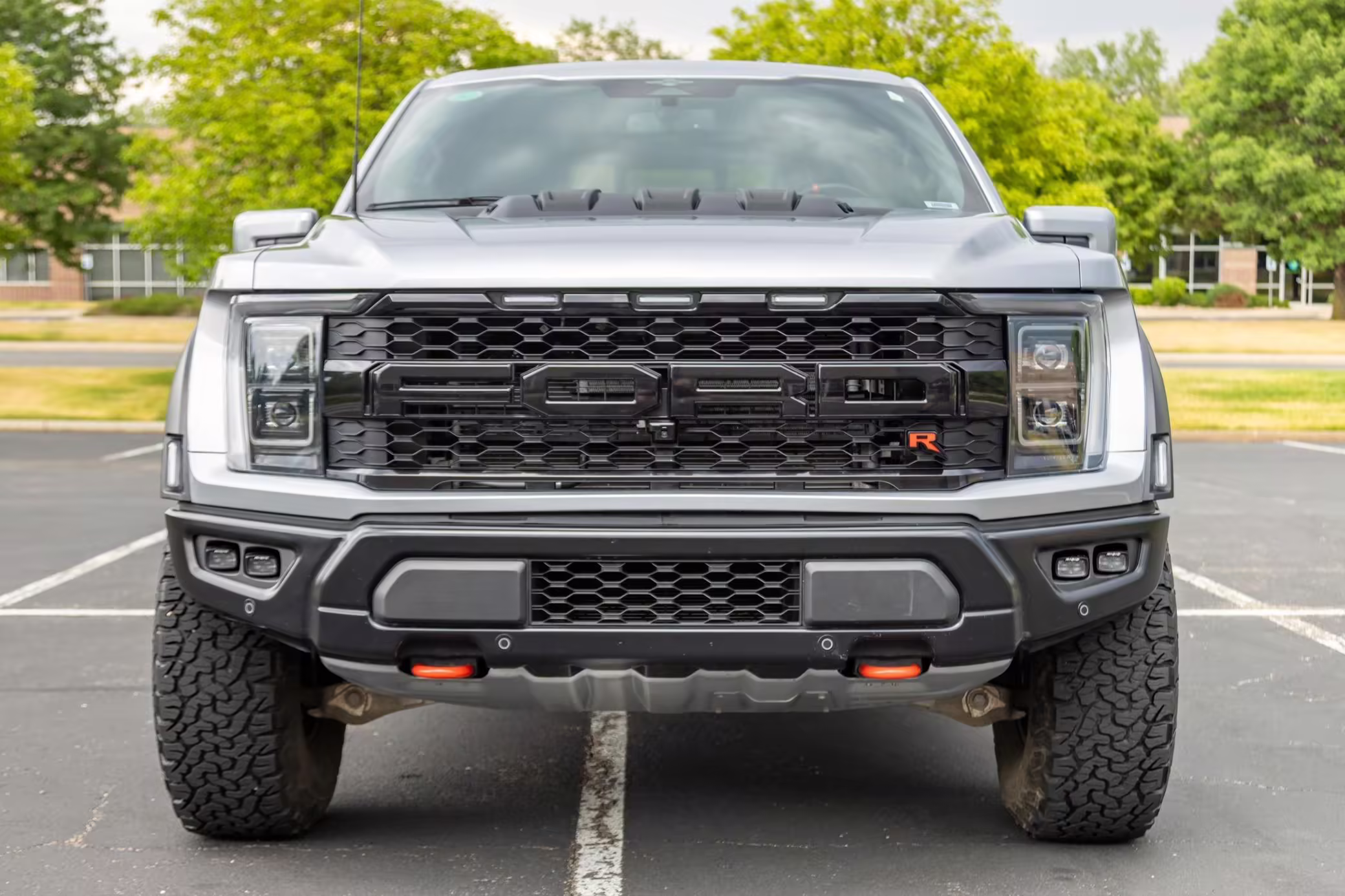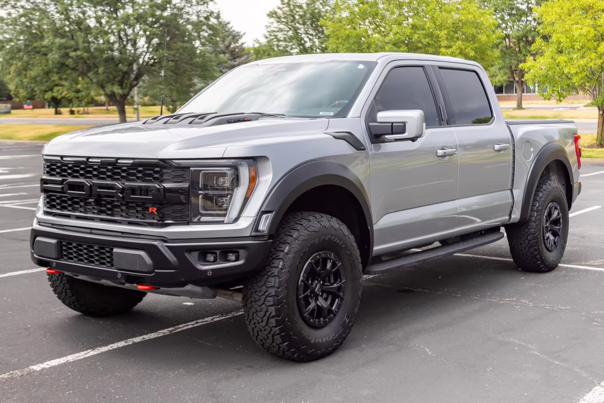2023 Ford F-150 Raptor, finished in Iconic Silver Metallic with a black interior.